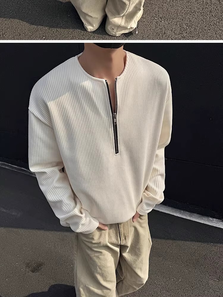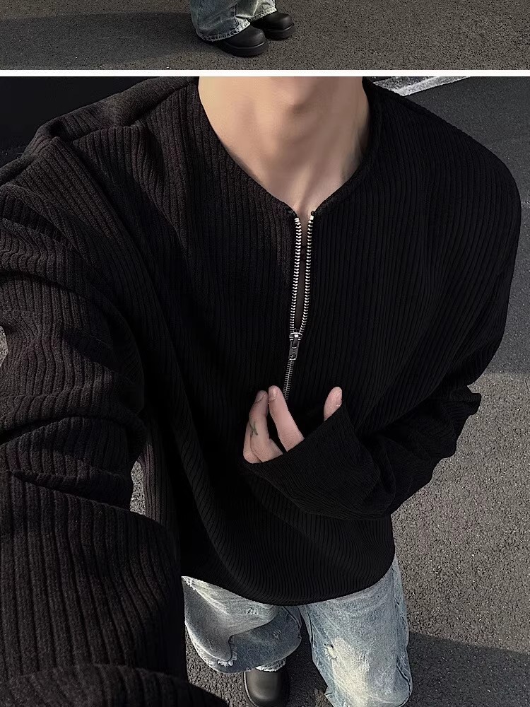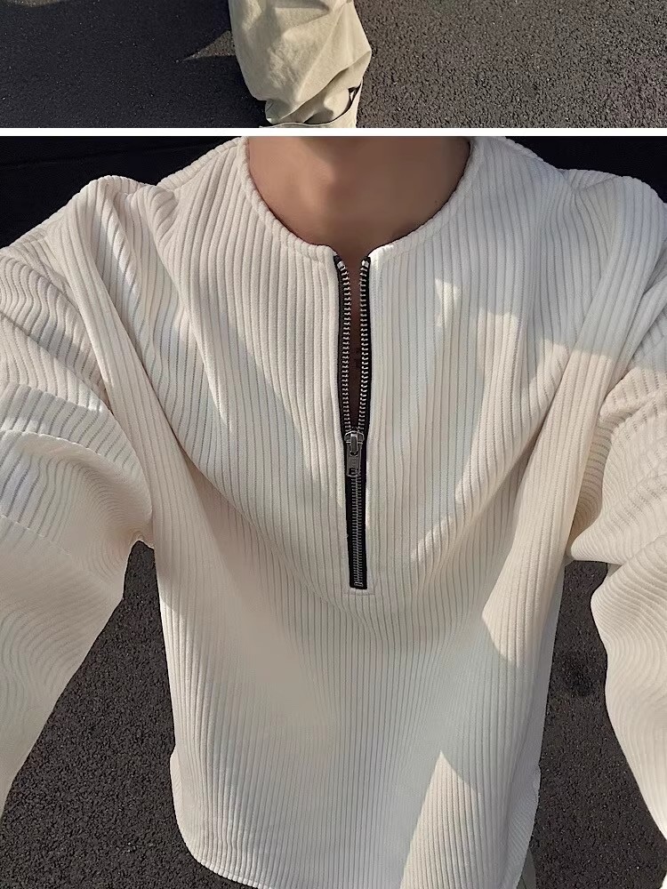 그레이 클렌핏 하프 Zip 스웨터 남자 2025 년 봄과 가을 게으른 스타일 하이 엔드 아메리칸 레트로 스웨터스토어 가기