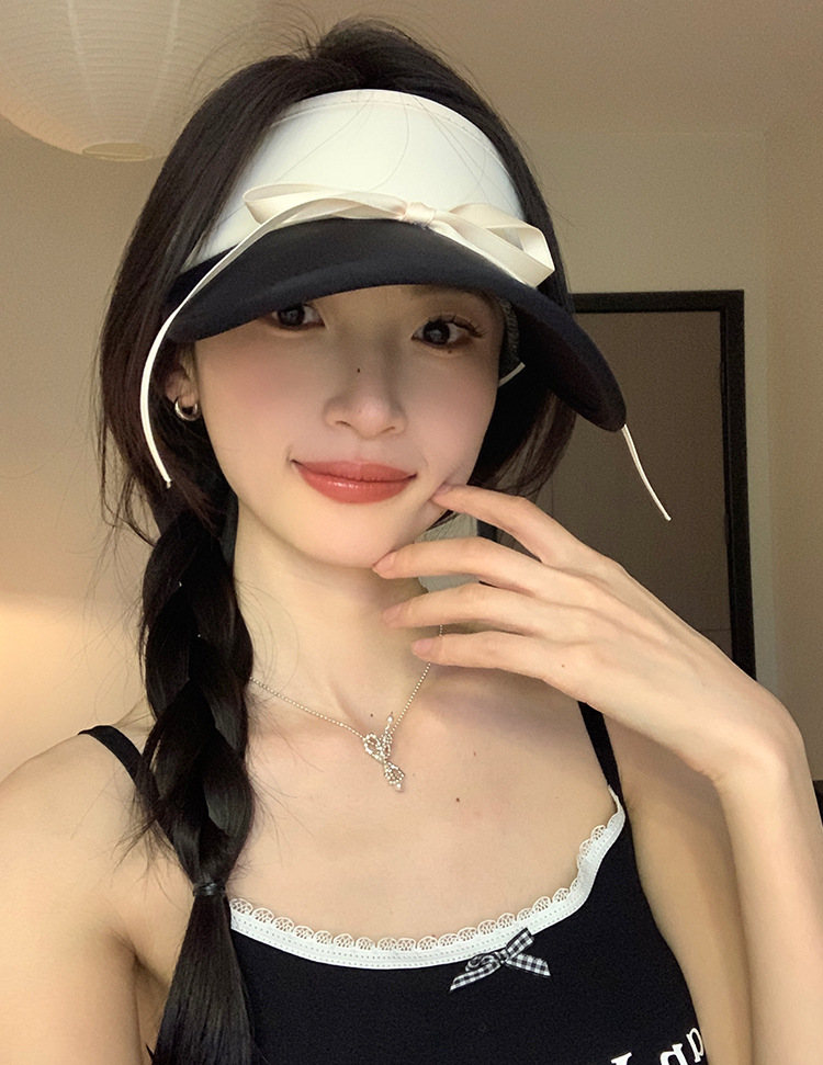 달콤한 활 스트랩 그늘 모자 여성의 여름 새로운 얼음 실크 태양 보호 그늘 토끼 최고 모자 통기성 UV 보호