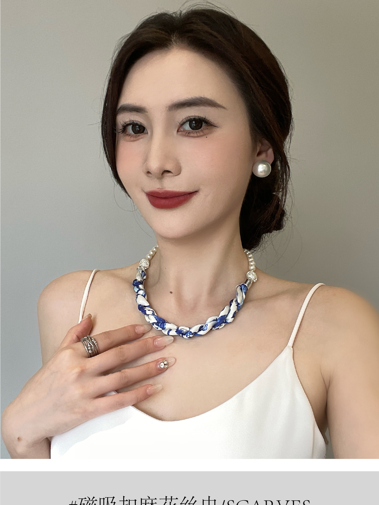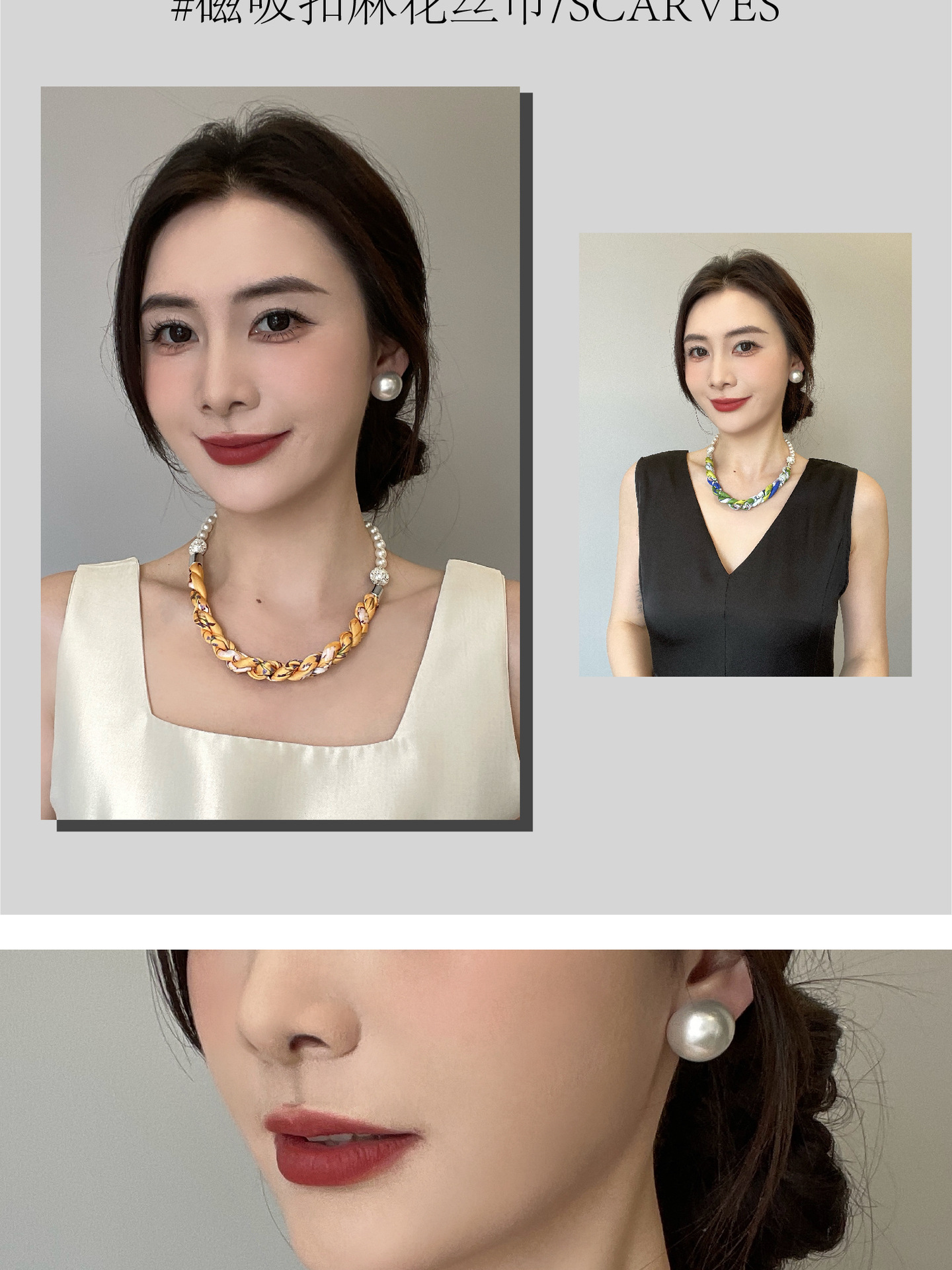 2025 새로운 진주 마그네틱 버클 분리 가능한 실크 스카프 유행 서양식 가방 다기능 쇄골 체인 하이 엔드 센스스토어 가기