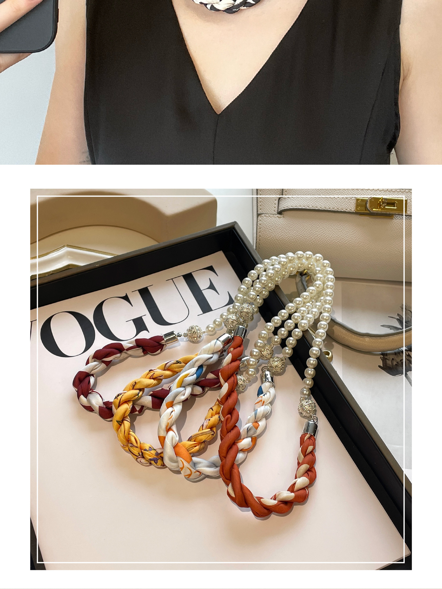 2025 새로운 진주 마그네틱 버클 분리 가능한 실크 스카프 유행 서양식 가방 다기능 쇄골 체인 하이 엔드 센스