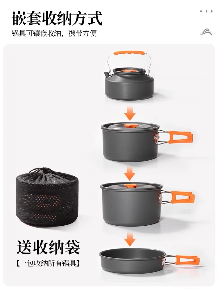 야외용 조리기구 세트, 휴대용 캠핑 조리기구, 물 끓이기 주전자 3종 세트, 캠핑 전용 냄비, 카세트 스토브 세트