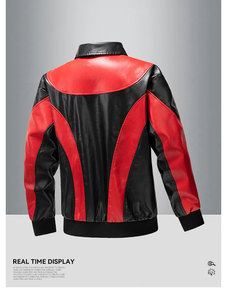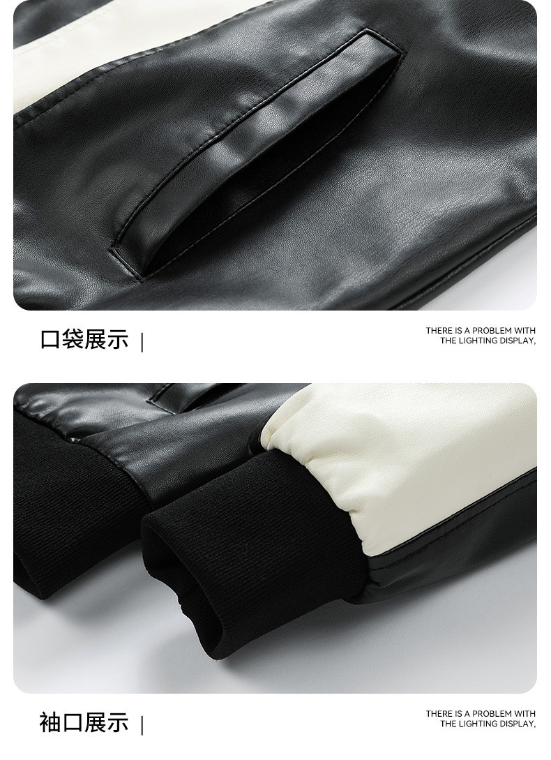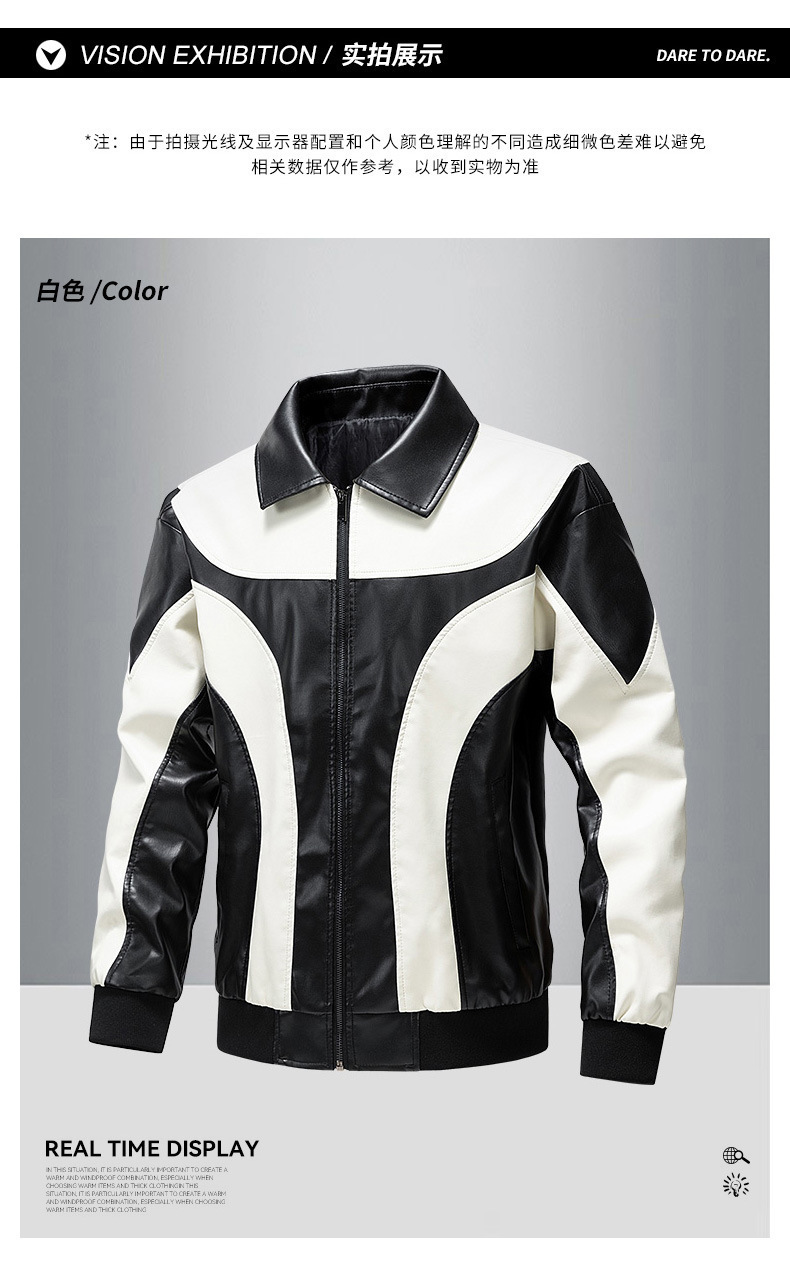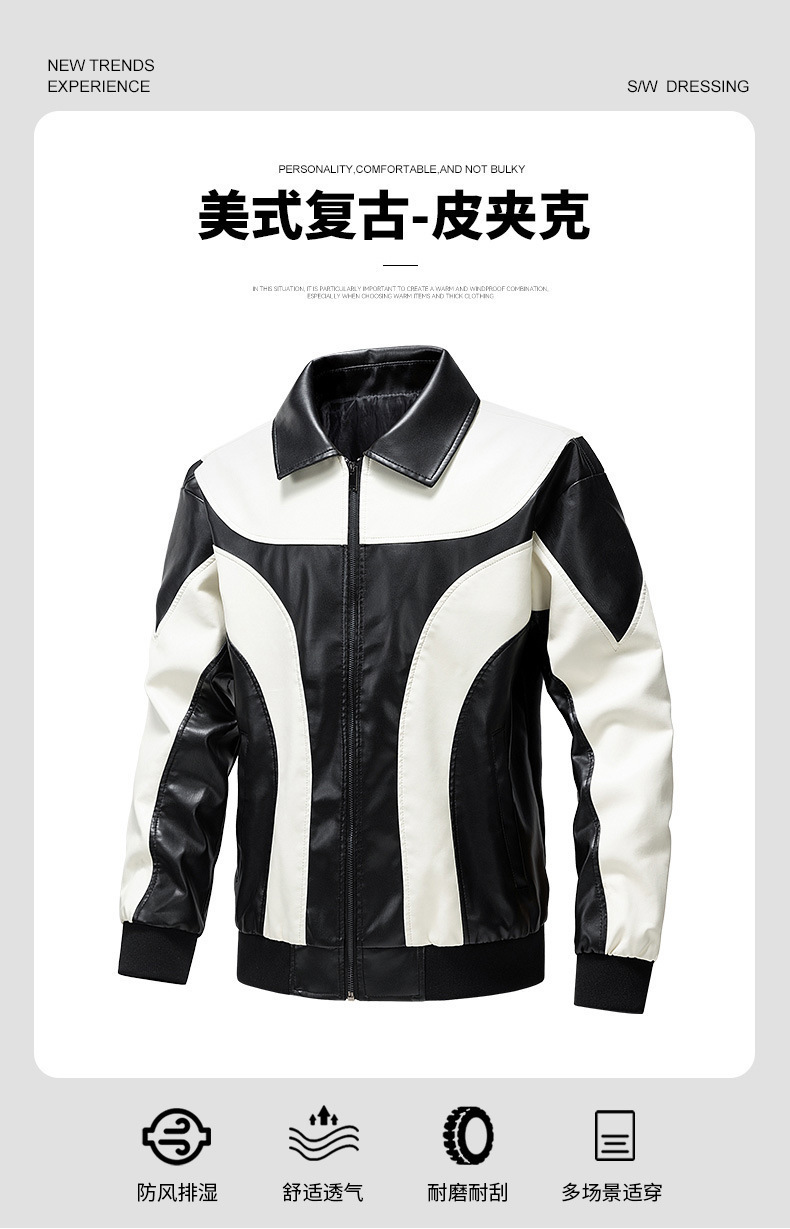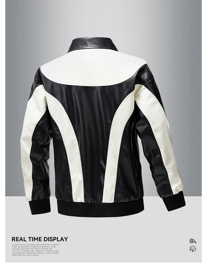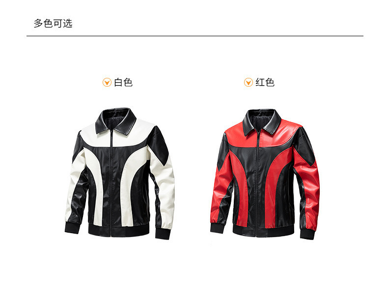 크로스보더 남성 가죽 자켓 2024 새로운 봄, 가을 한국 스타일 슬림 트렌디 오토바이 스플 라이스 컬러 pu 남성 가죽 자켓스토어 가기