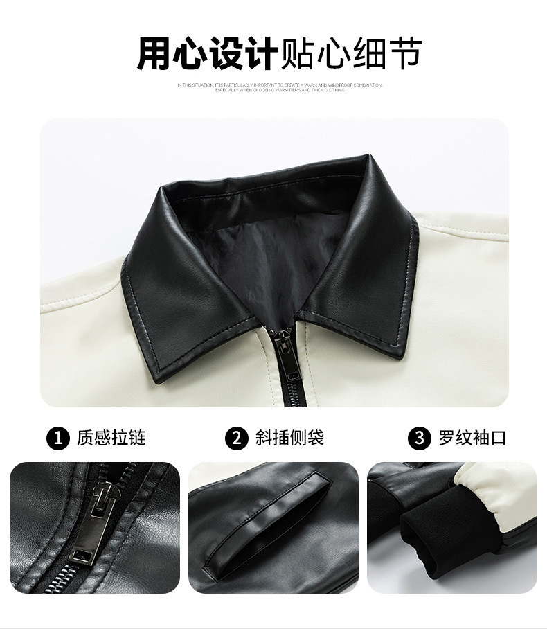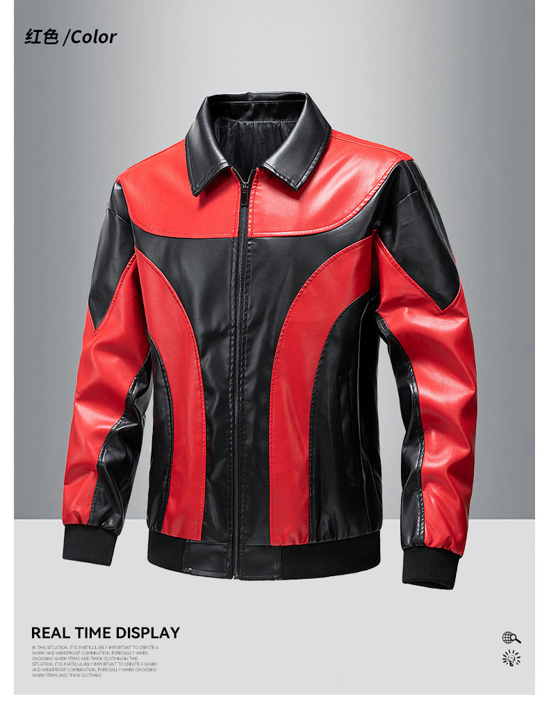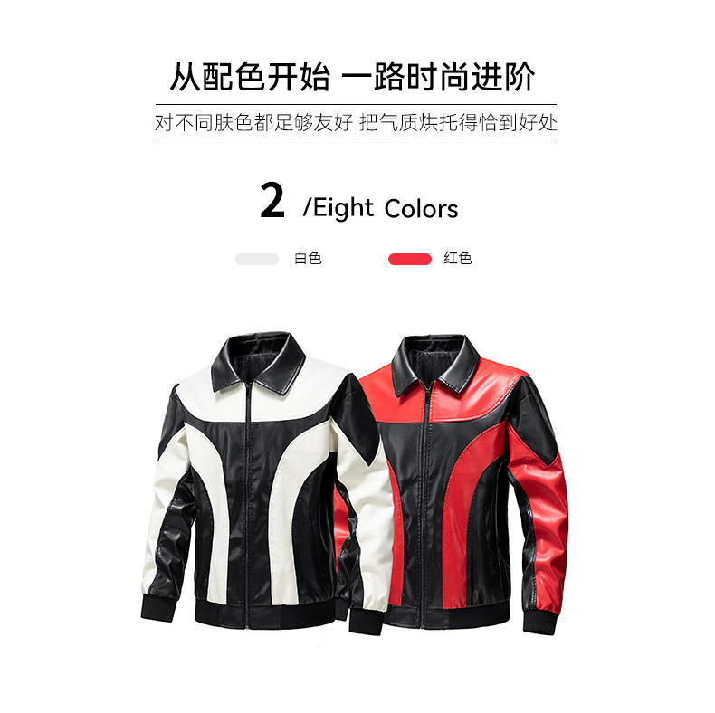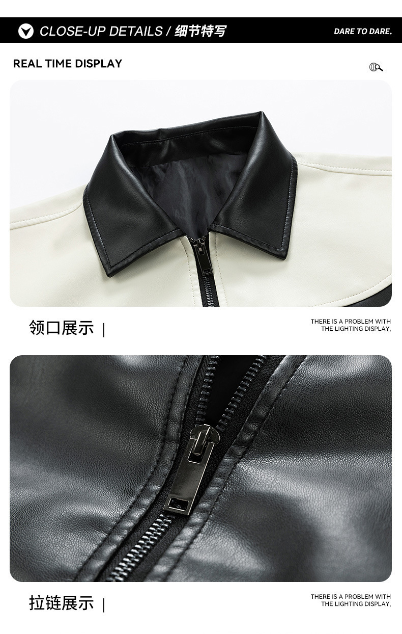 크로스보더 남성 가죽 자켓 2024 새로운 봄, 가을 한국 스타일 슬림 트렌디 오토바이 스플 라이스 컬러 pu 남성 가죽 자켓