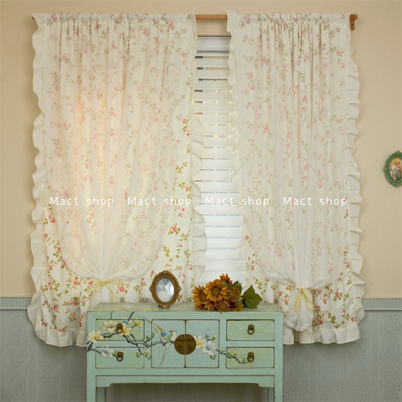 더블 레이어 미국 목가적 컨트리 꽃 커튼 짧은 커튼 베드 창 레이스 도어 커튼 캐비닛 커튼 파티션 커튼 홍콩 스타일스토어 가기
