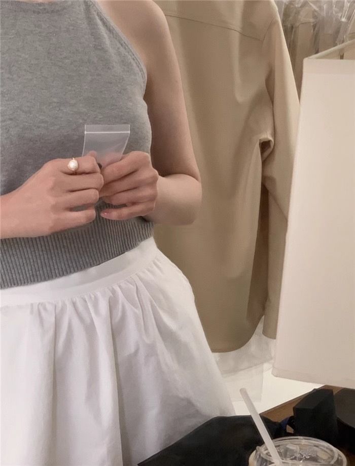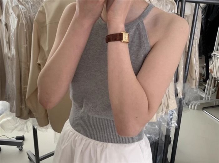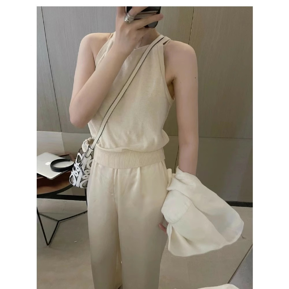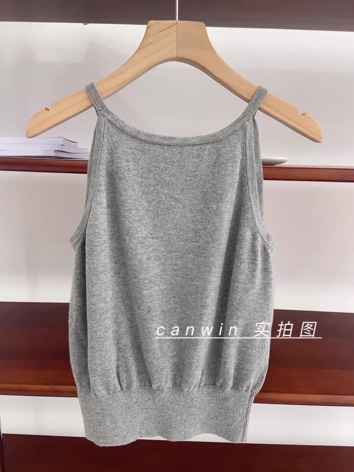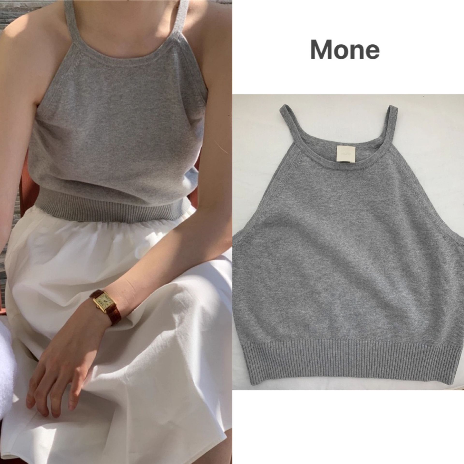 여름 하이 엔드 순수한 욕망 스타일 교수형 목 니트 슬링 디자인 센스 틈새 의상 어깨 탑 그레이 조끼스토어 가기