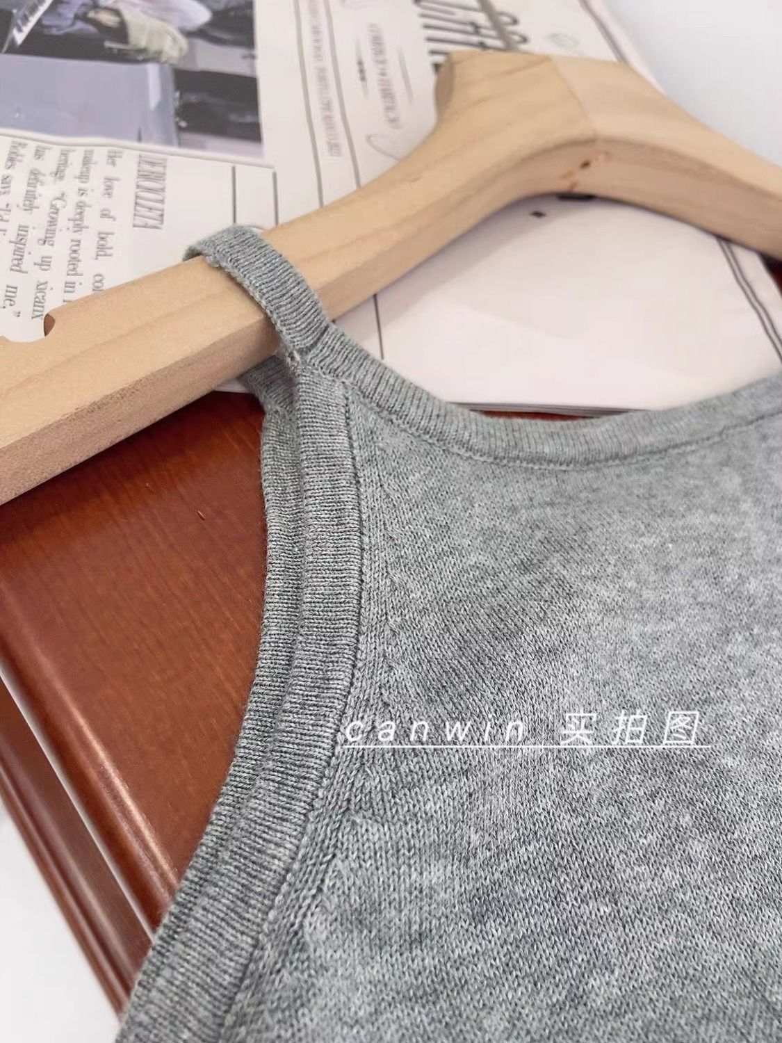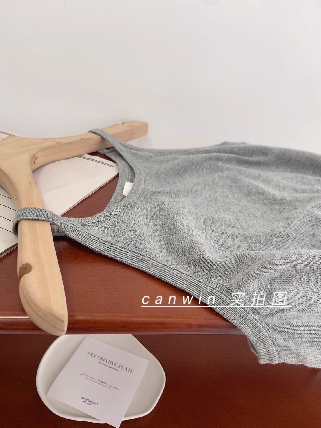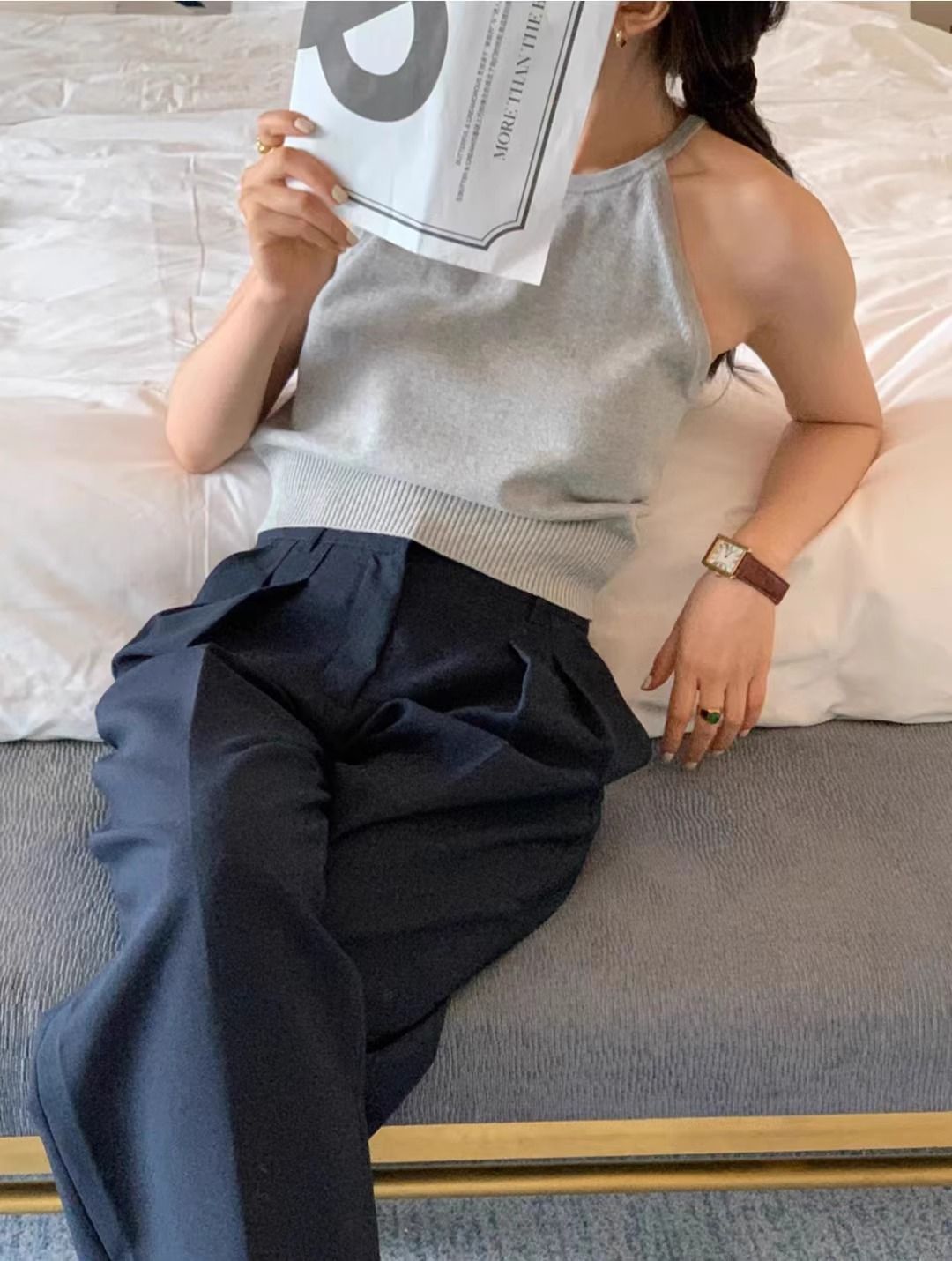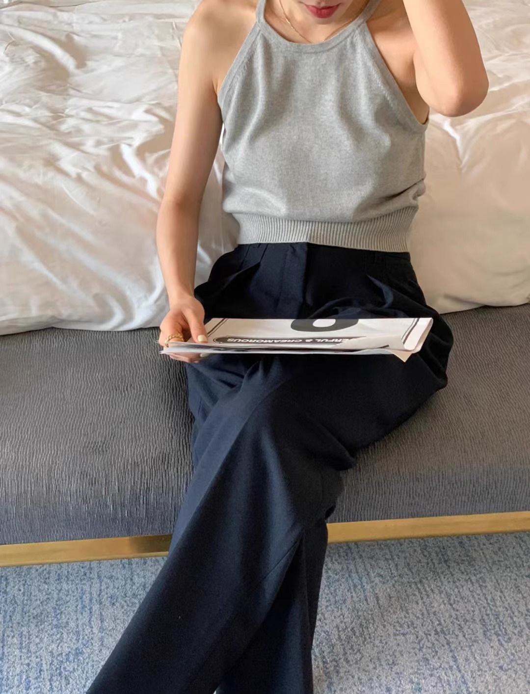 여름 하이 엔드 순수한 욕망 스타일 교수형 목 니트 슬링 디자인 센스 틈새 의상 어깨 탑 그레이 조끼스토어 가기