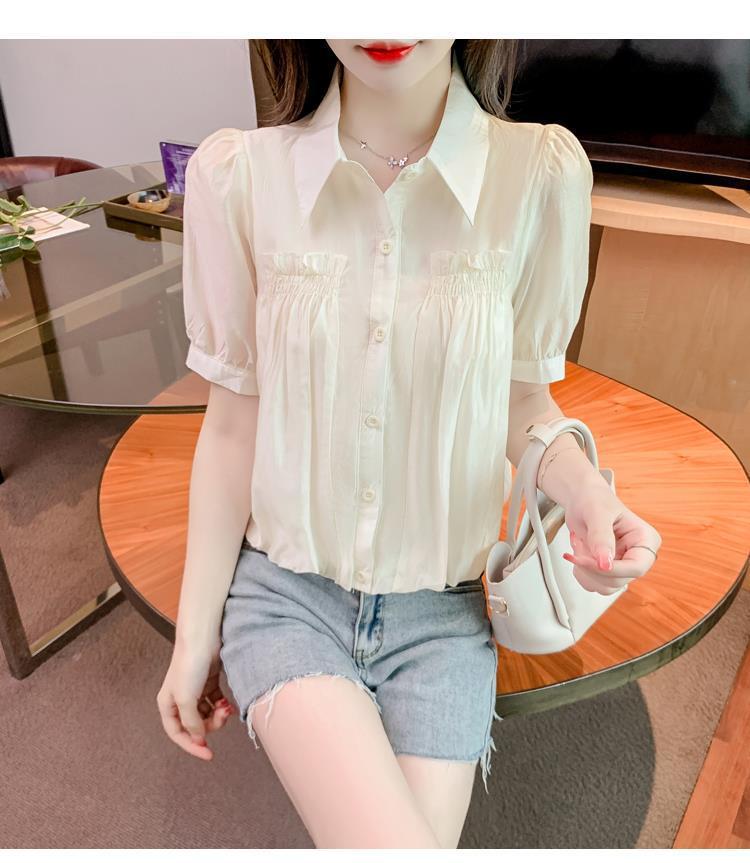 반소매 쉬폰 셔츠 여성용 2025 년 새 여름 슬림 배꼽 커버링 외국식 연령 감소 디자인 틈새스토어 가기