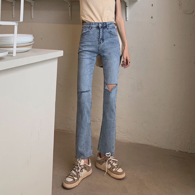 높은 허리 스트레치 리핑 스트레이트 청바지 여성용 얇은 2025 봄 새로운 도착 슬림 핏 크롭 트렌디 팬츠스토어 가기