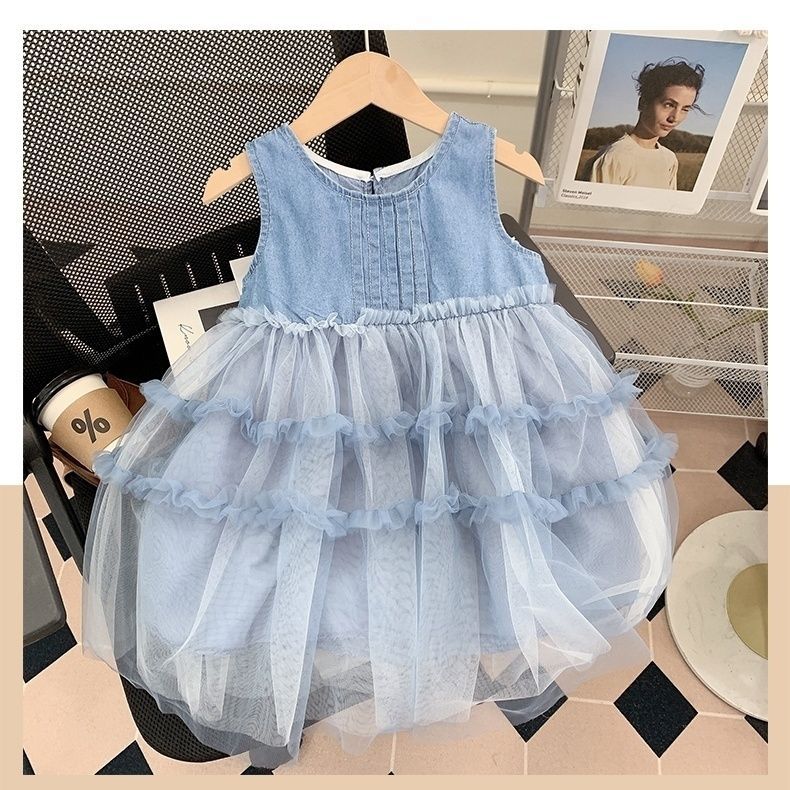 2026 신상 여아 원피스 아동복 봄 어린이 패션 공주 드레스 여자 아기 민소매 데님 거즈 드레스