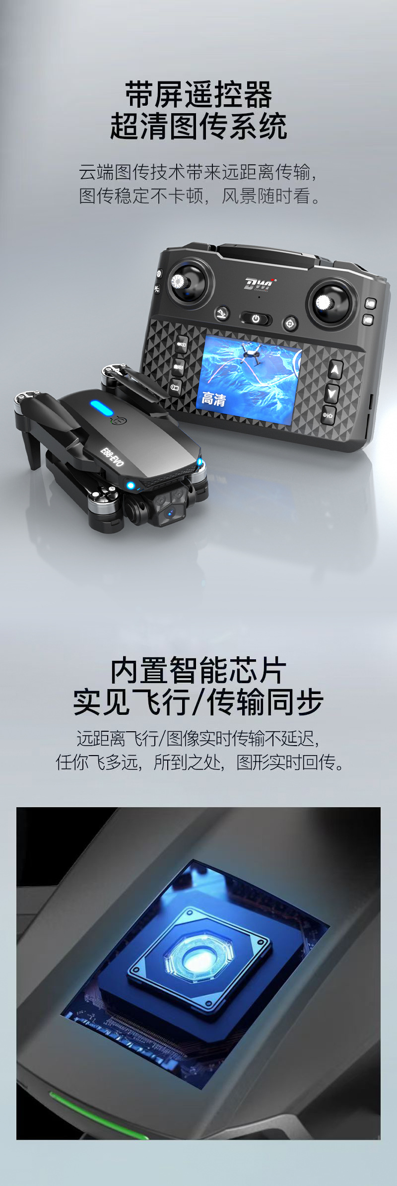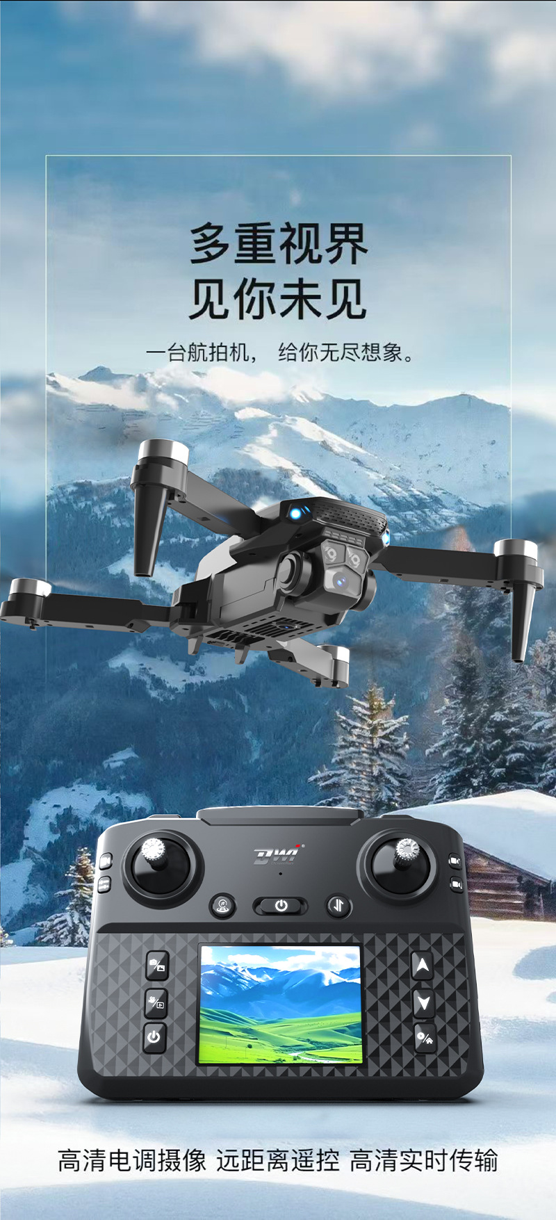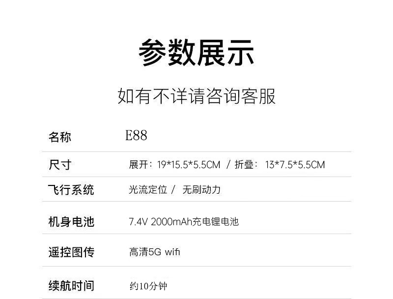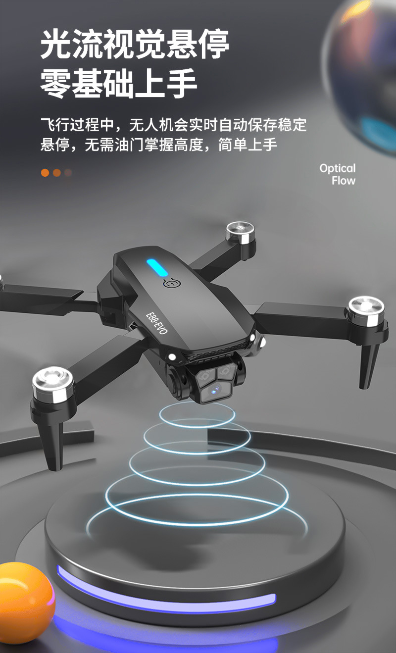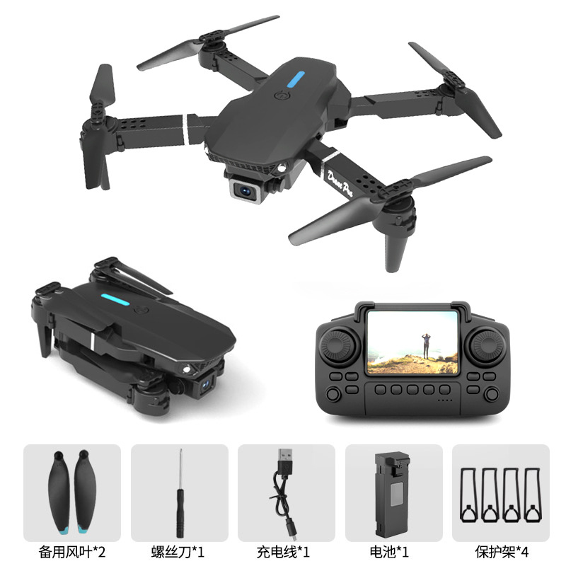 E88 UAV 광학 흐름 위치 듀얼 카메라 원격 제어 항공기 브러시리스 모터 화면 디스플레이 쿼드 콥터