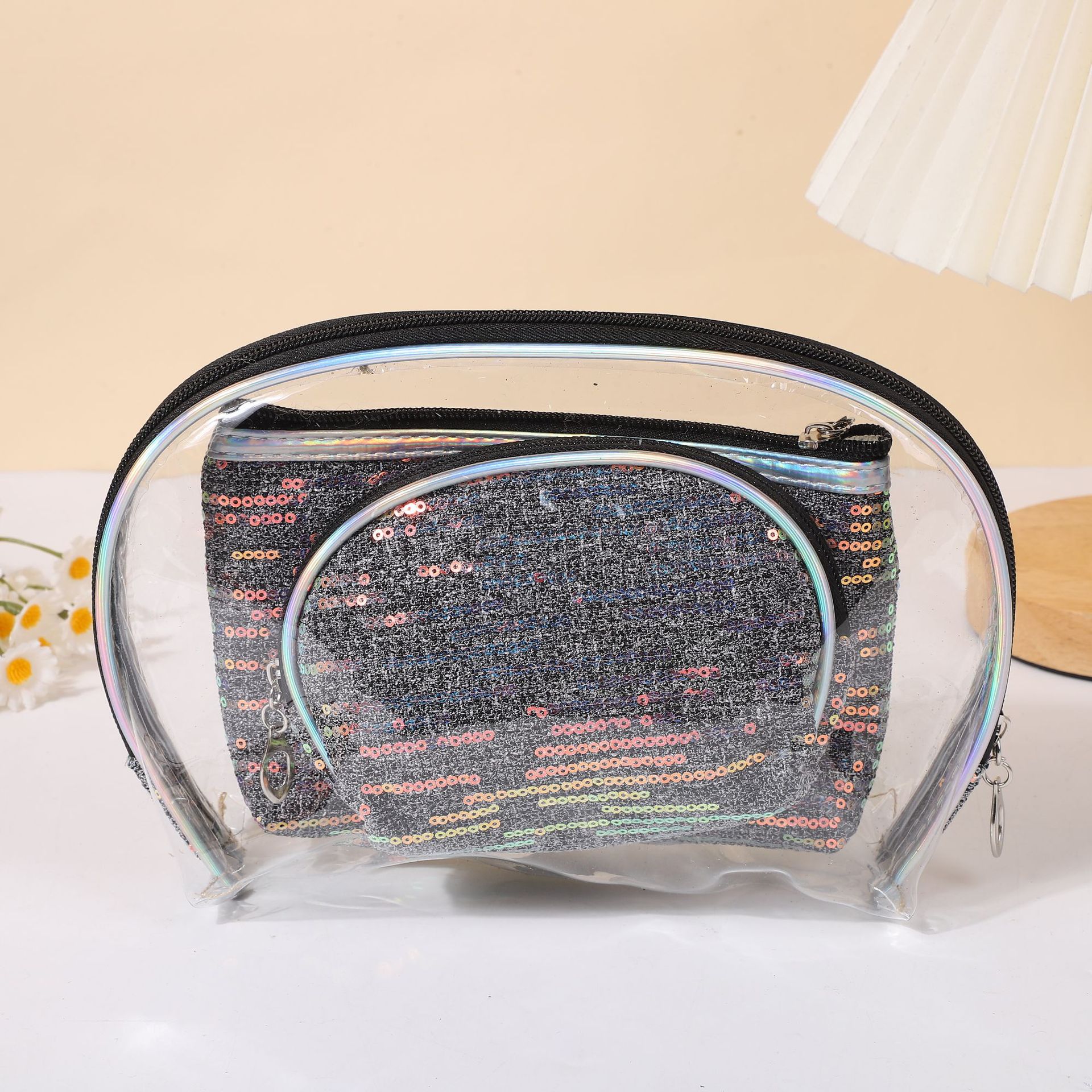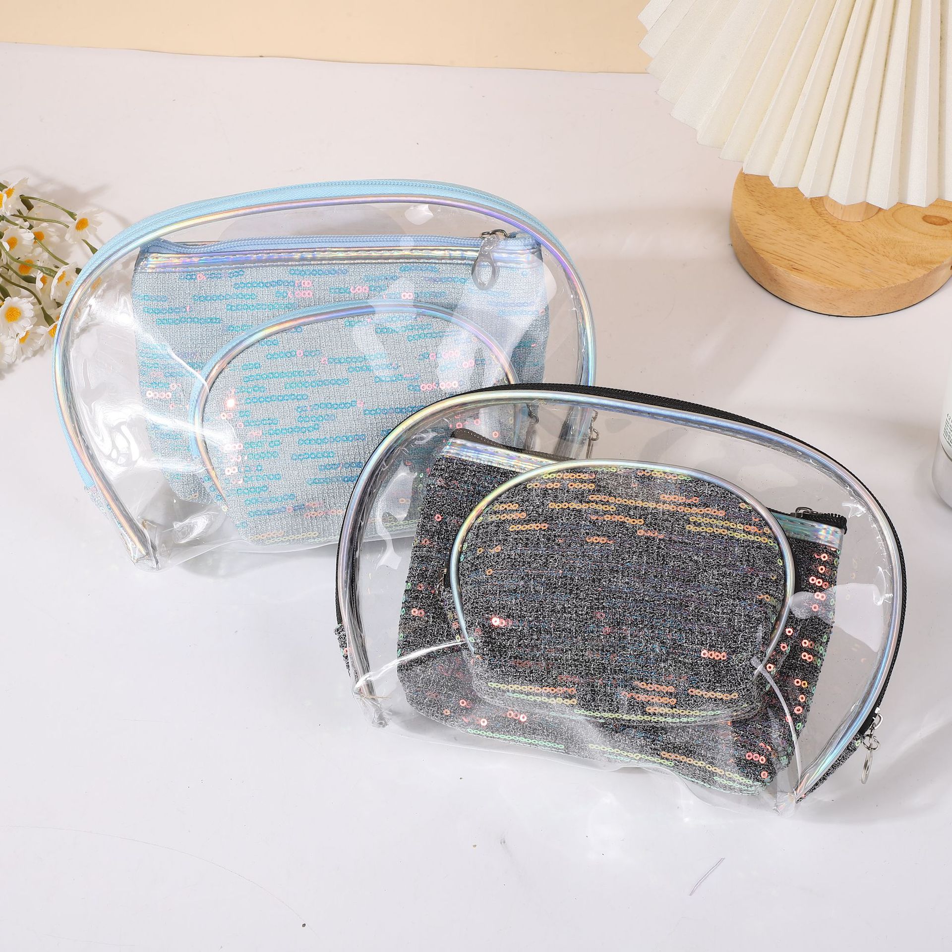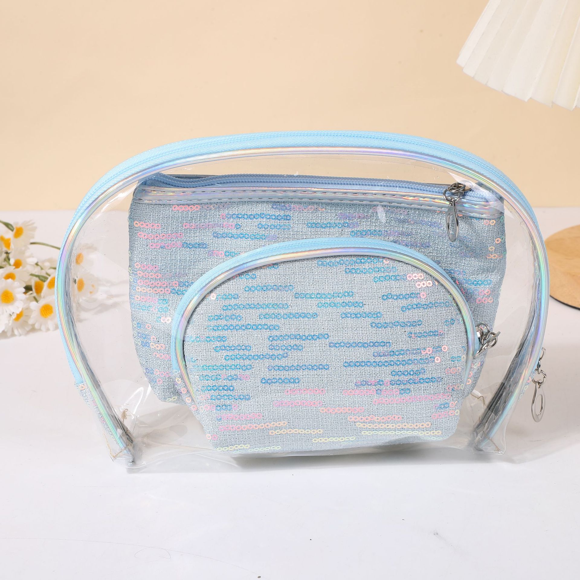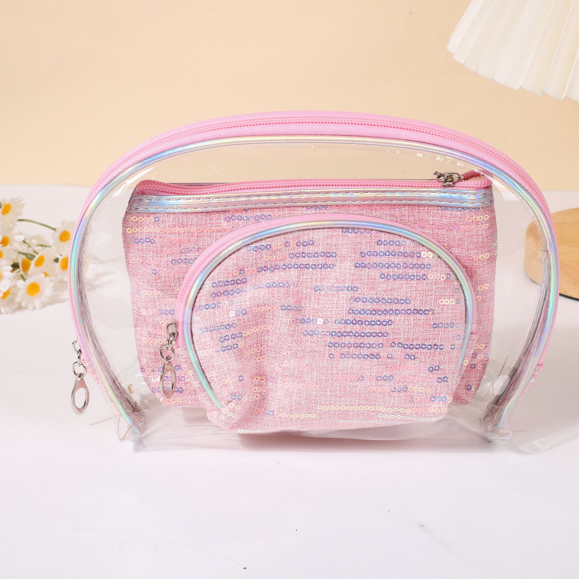 국경 간 화장품 가방 클러치 백 3 피스 세트 투명 PVC 대용량 방수 화장품 가방 휴대용 여행 세면 용품 가방