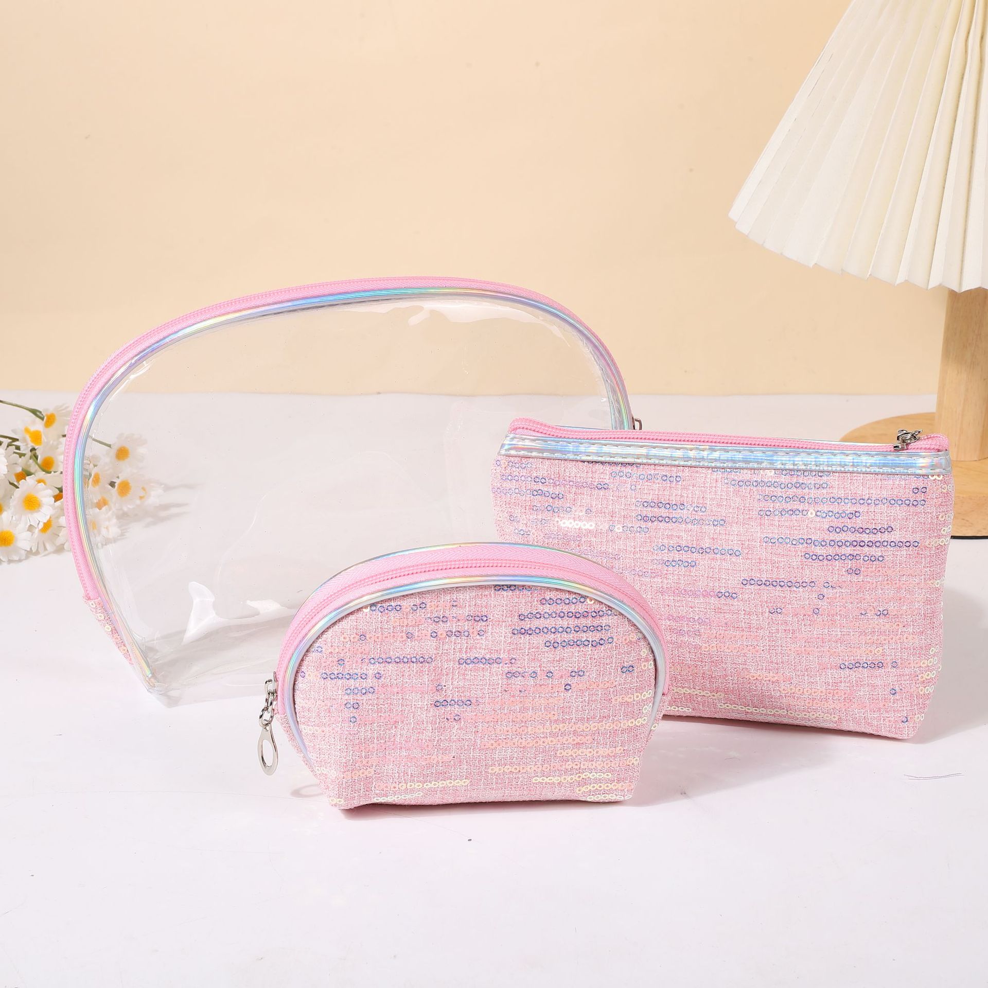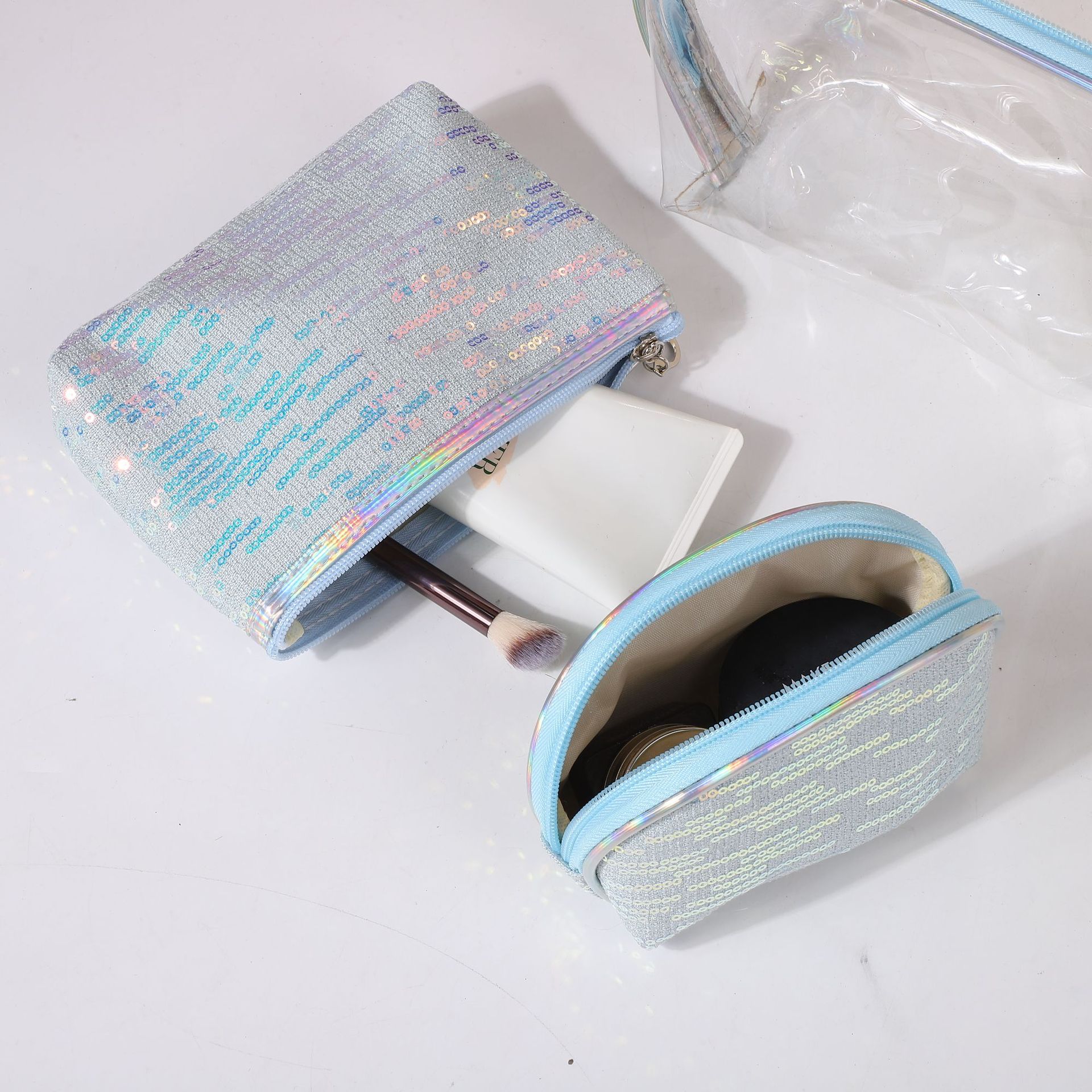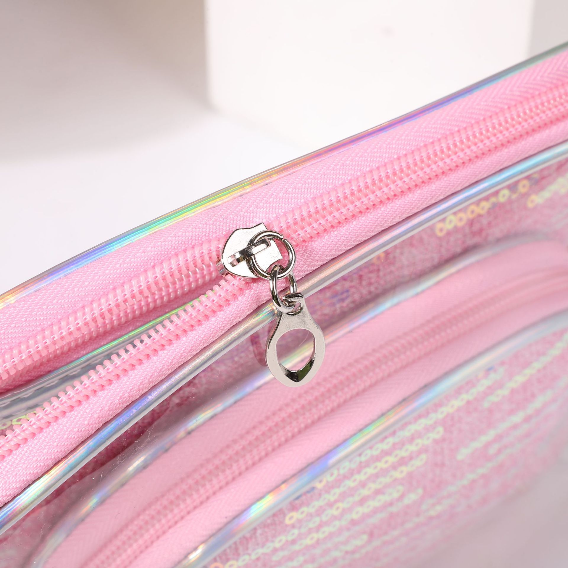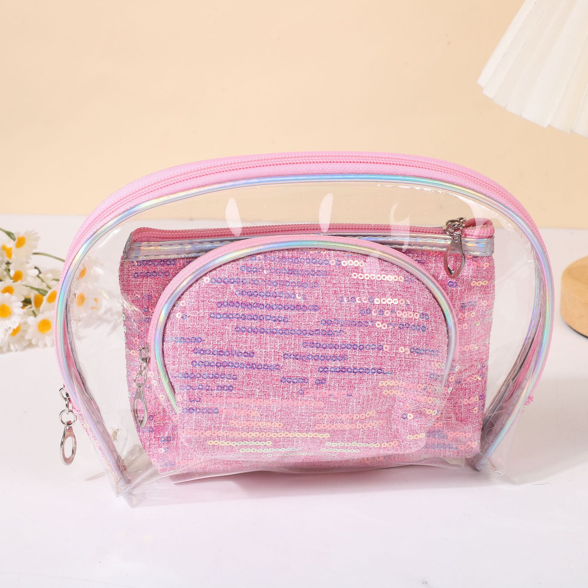 국경 간 화장품 가방 클러치 백 3 피스 세트 투명 PVC 대용량 방수 화장품 가방 휴대용 여행 세면 용품 가방