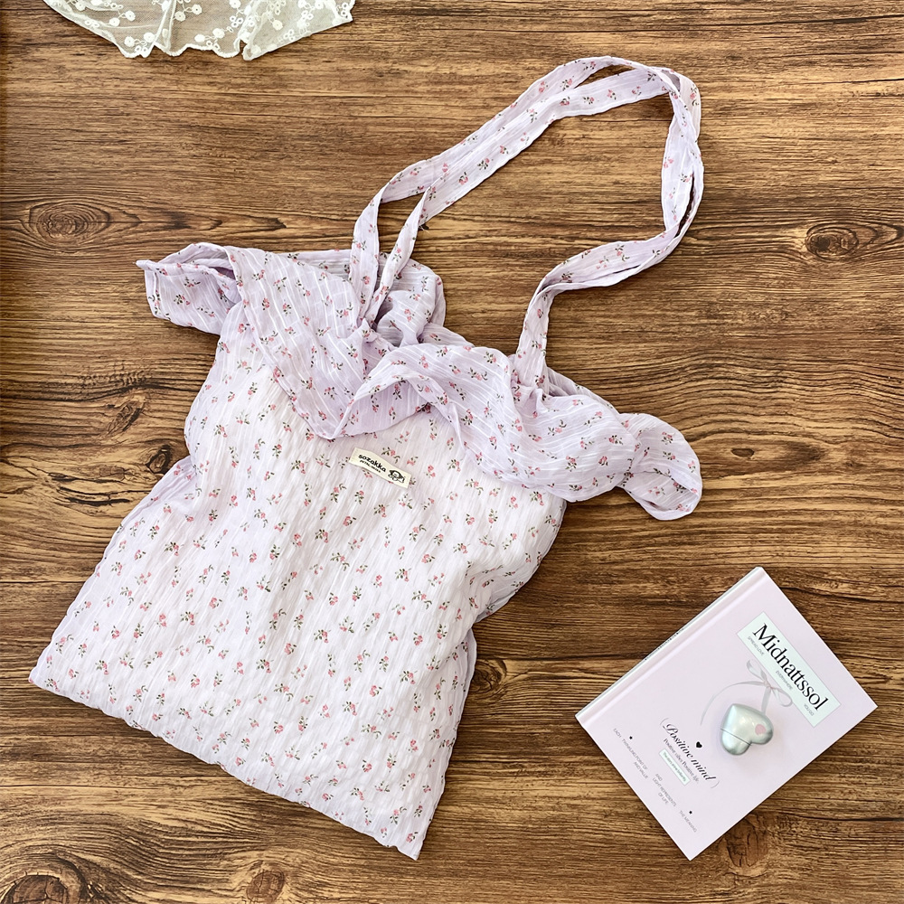52202 신선하고 달콤한 꽃 주름 어깨 가방 대용량 학생 클래스 가방 패션 쉬폰 토트 백스토어 가기