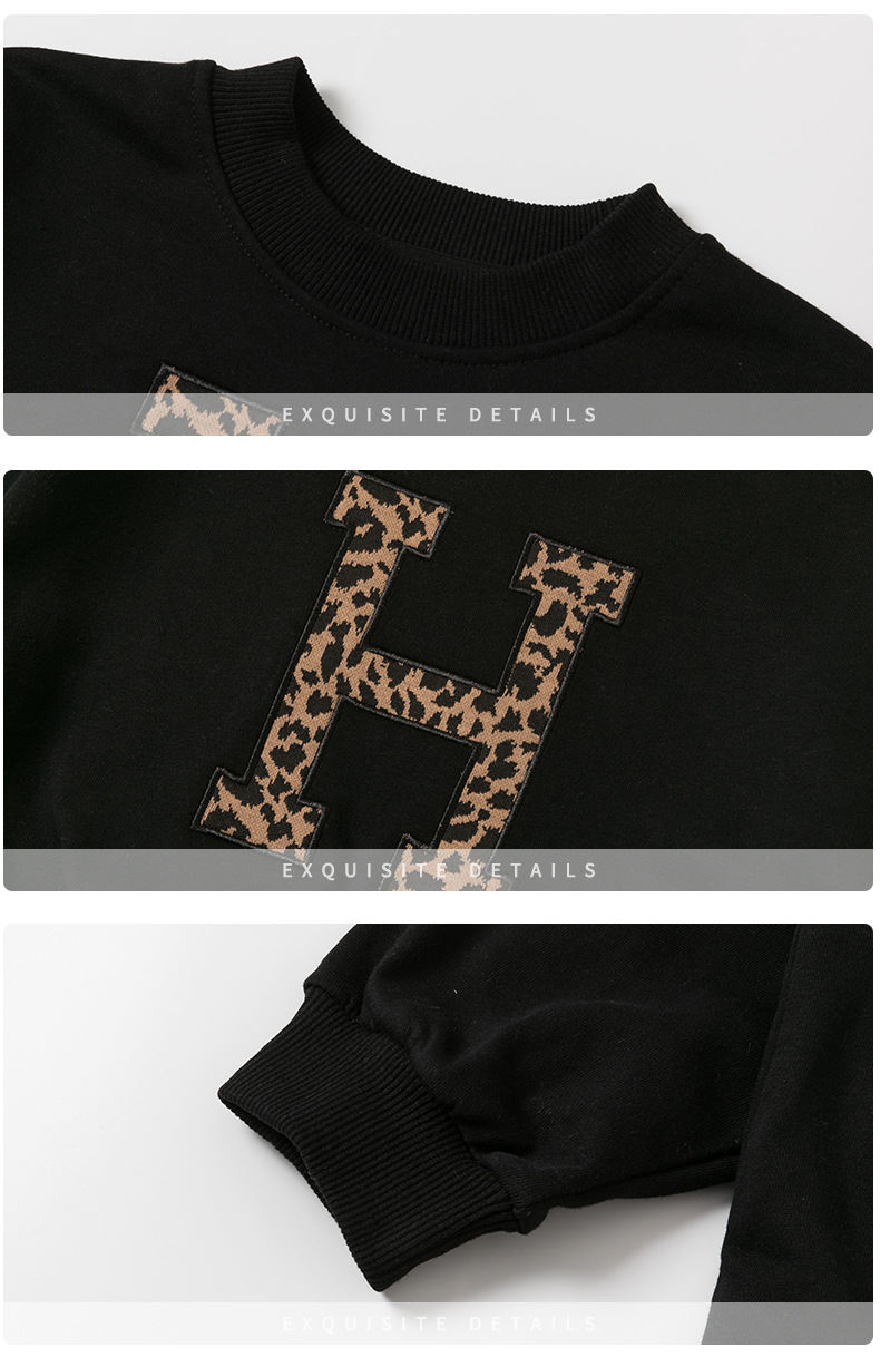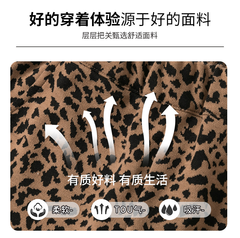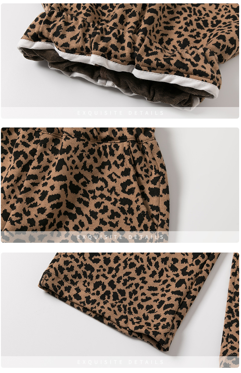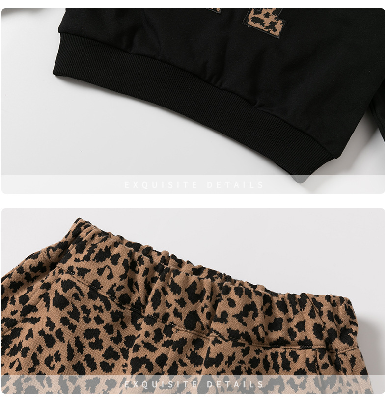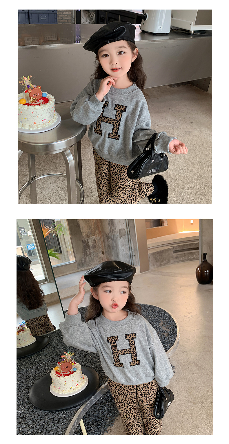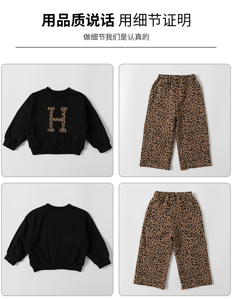 봄과 가을 새로운 여성 패션 세련된 코튼 스웨터 어린이 레오파드 와이드 레그 팬츠 세트 소녀의 세련된 쿨 투피스 세트