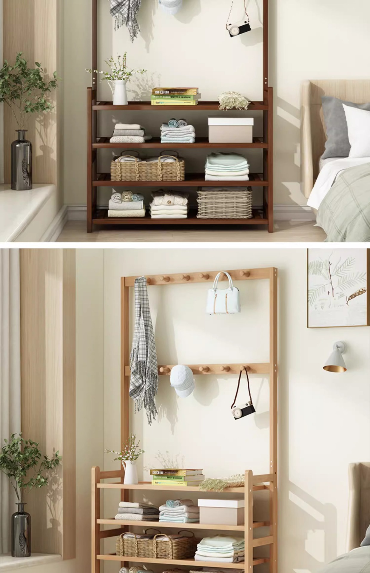 Shengbangrong 저장 랙 간단한 코트 랙 빨간 옷 옷걸이 바닥 보관 및 배치 침실 그물 가방 다기능스토어 가기
