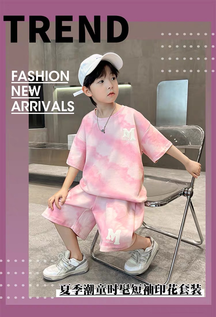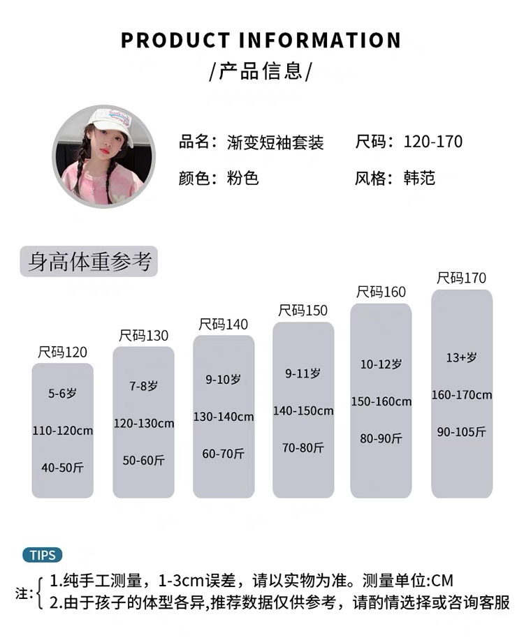 그라디언트 여름 원피스 걸스 반팔 세트 2025 새 어린이 반바지 투피스 유행 여아 옷스토어 가기