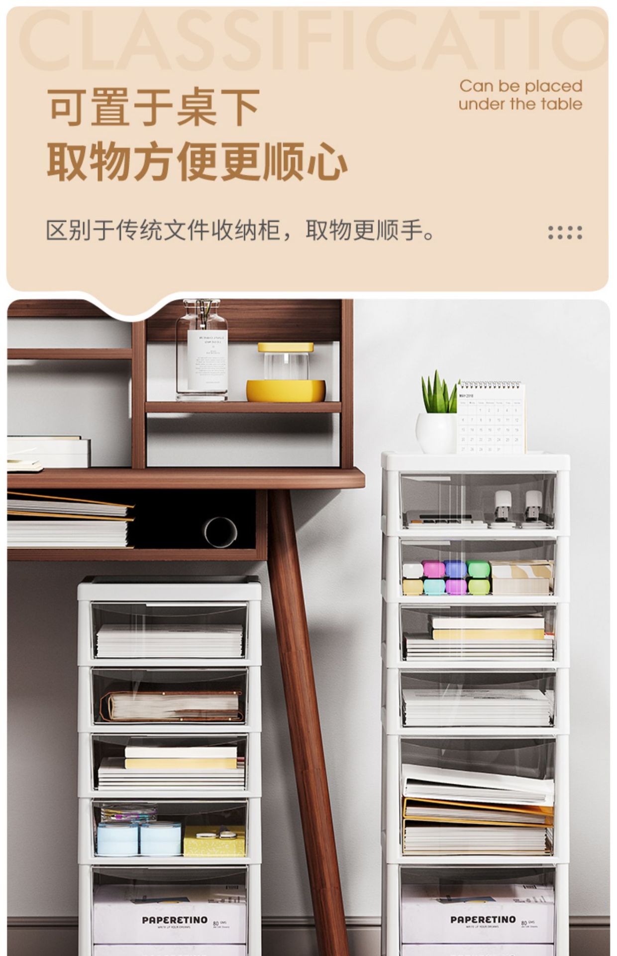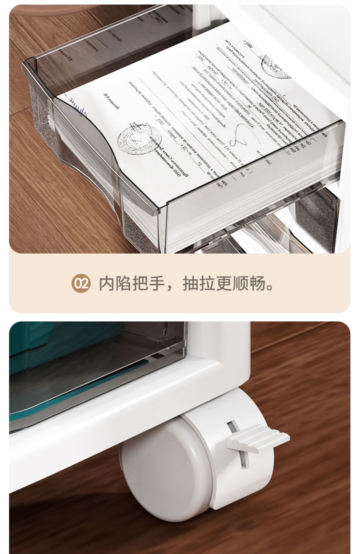 • 짧은 모델 - 투명 파일 캐비닛 [6개 레이어]에는 범용 바퀴가 함께 제공됩니다.