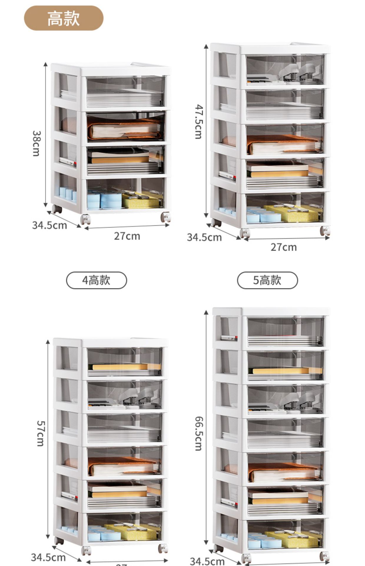 • 짧은 모델 - 투명 파일 캐비닛 [7 레이어]에는 범용 바퀴가 함께 제공됩니다.