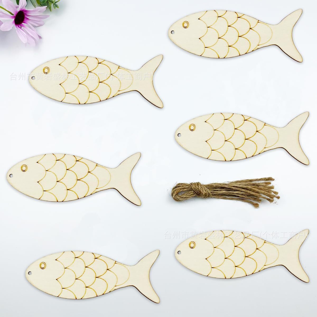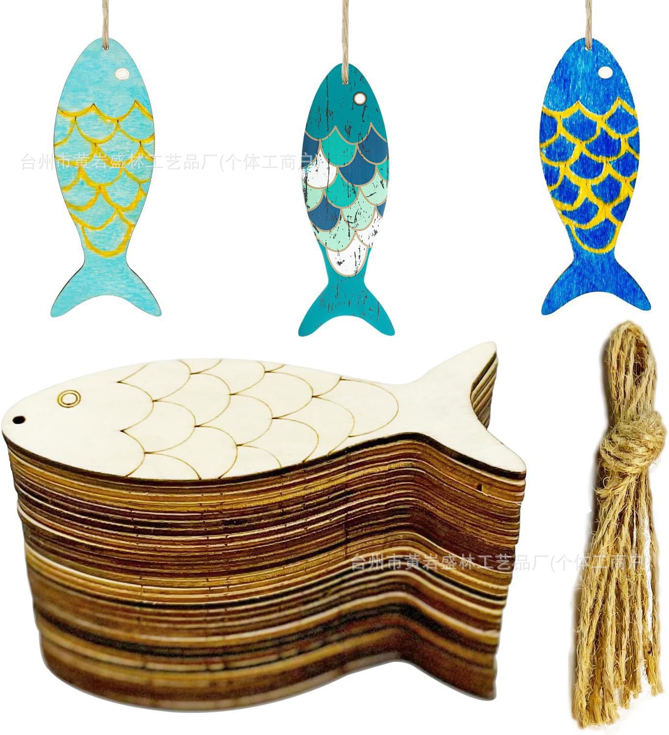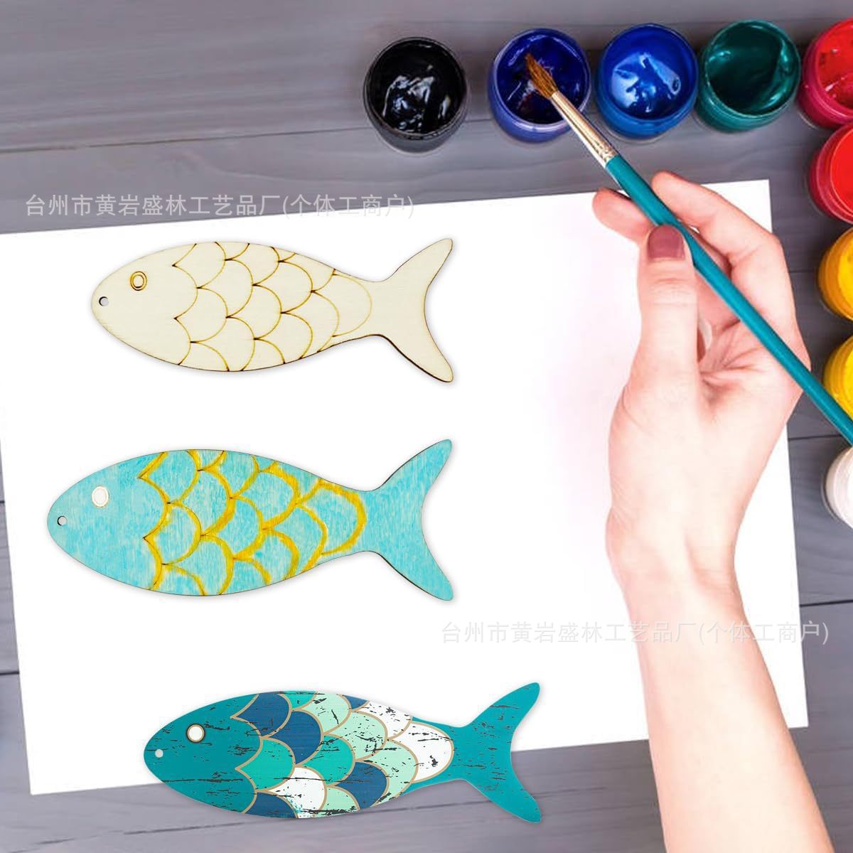 나무 물고기 모양의 장식품 흰색 배아 30 조각 어린이 DIY 그림 교육 보조 나무 공예 도매스토어 가기