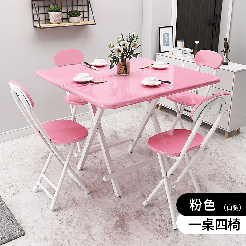 • 핑크 80*80*75cm 테이블과 의자 4개