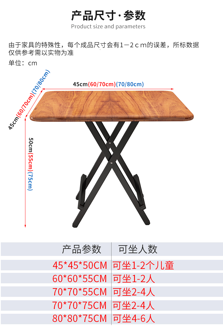 셩방롱 접이식 테이블 가정용 식탁 식사 테이블 간단한 사각 테이블 소형 가정용 식탁 의자 휴대용 야외 테이블