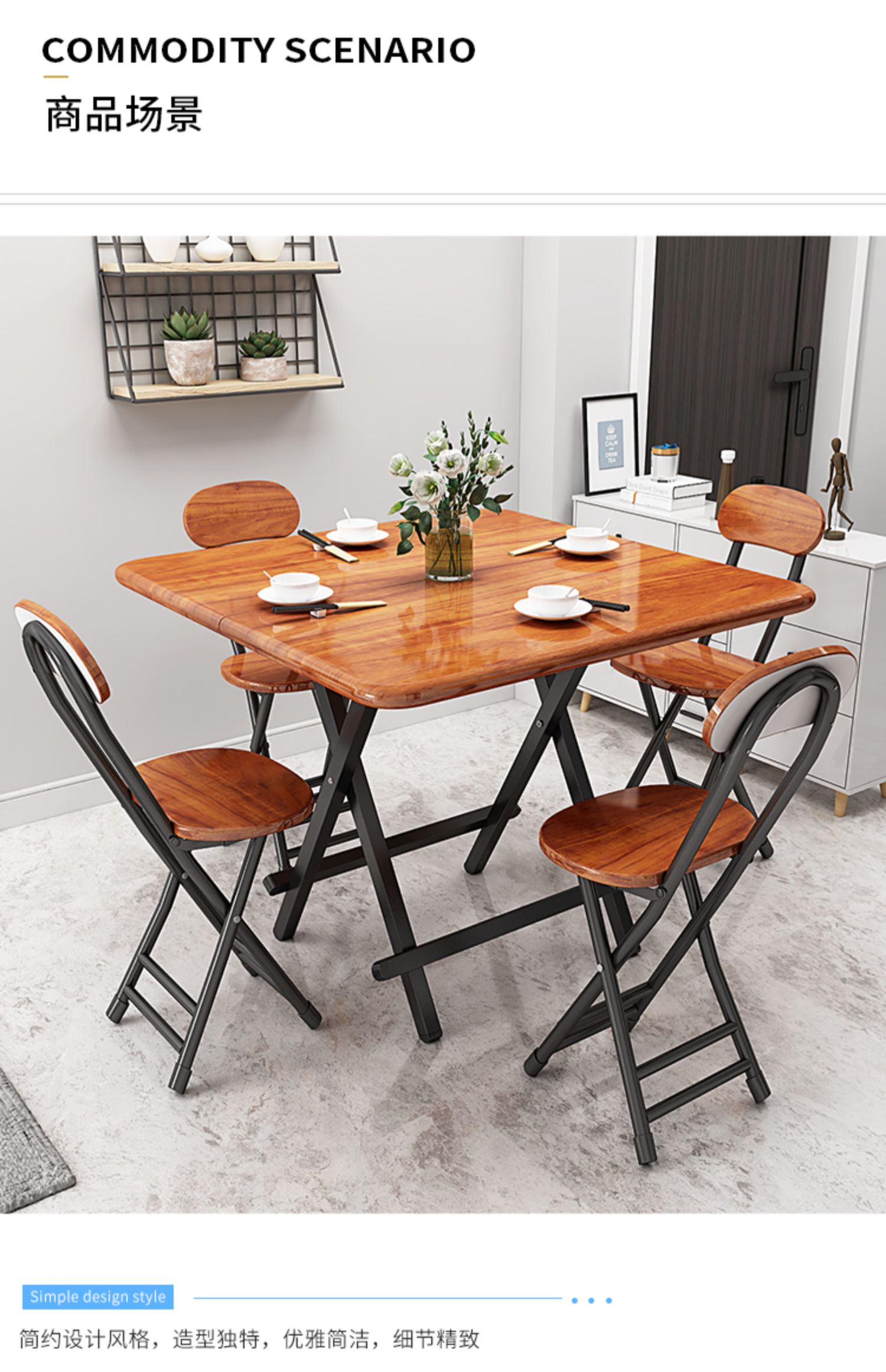 셩방롱 접이식 테이블 가정용 식탁 식사 테이블 간단한 사각 테이블 소형 가정용 식탁 의자 휴대용 야외 테이블스토어 가기