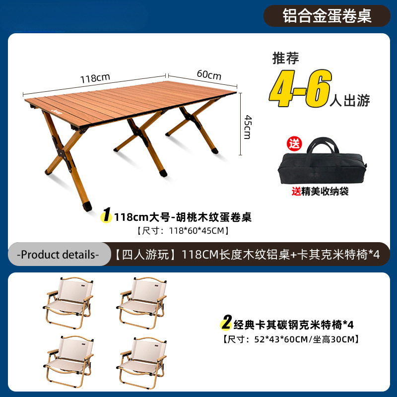 뜨거운 밀 야외 접이식 테이블 캠핑 테이블과 의자 달걀 롤 테이블 피크닉 테이블 및 의자 통합 휴대용 캠핑 전체 장비 세트스토어 가기