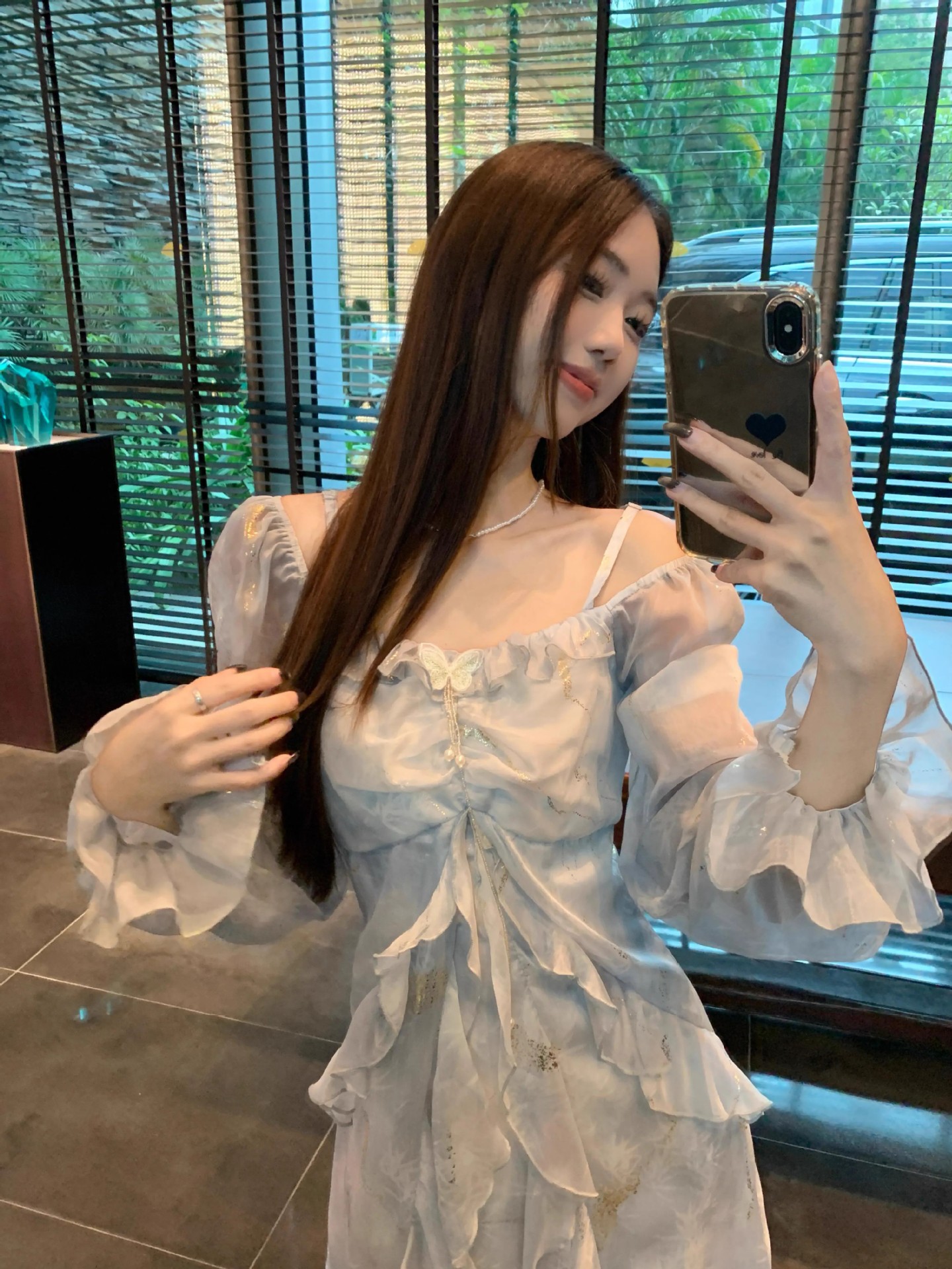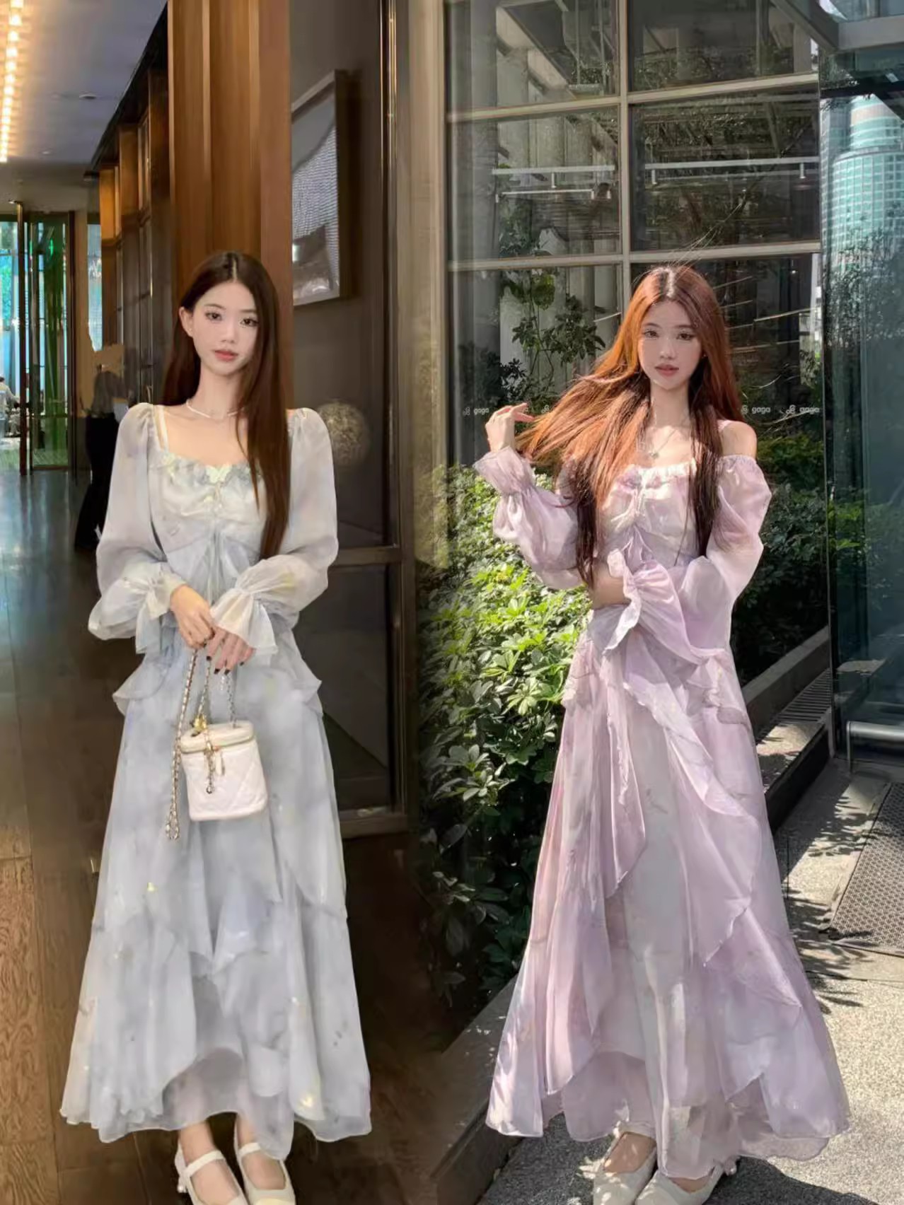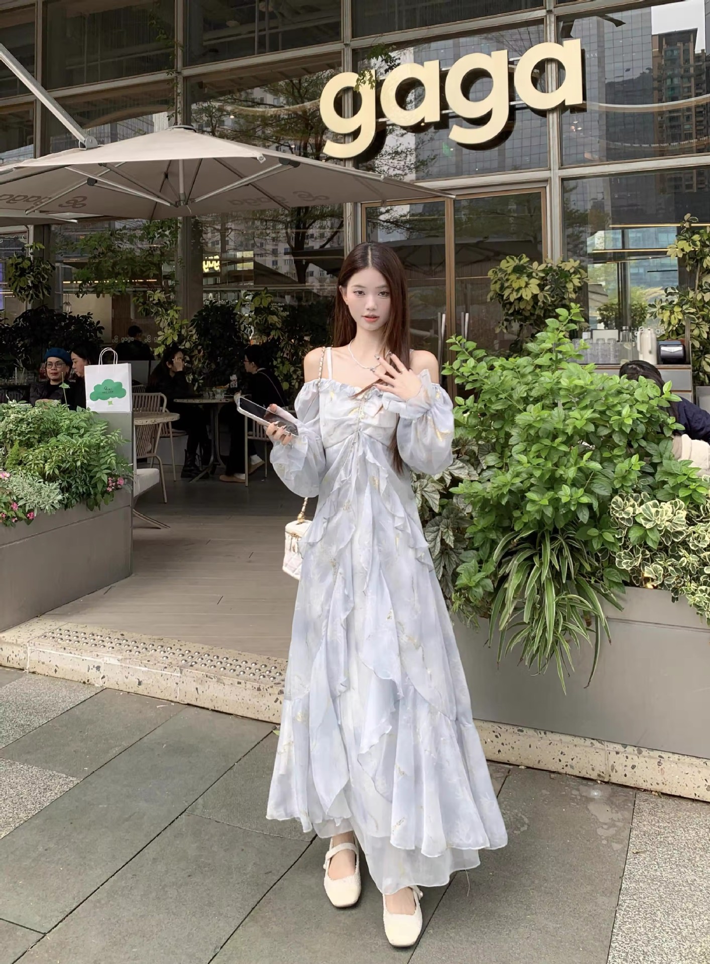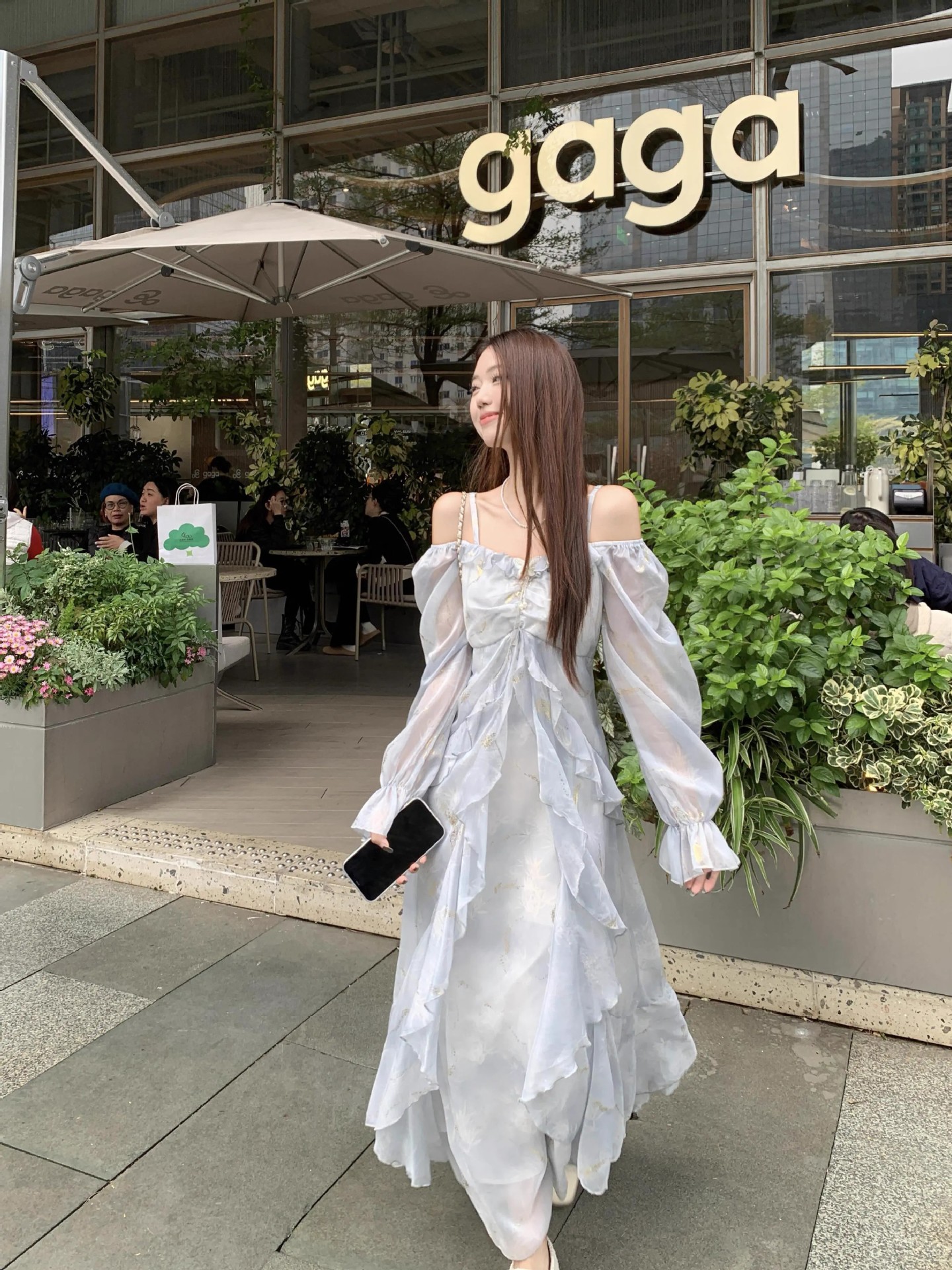 슈퍼 인기 인터넷 축하 같은 스타일 소녀 패션 시폰 자수 요정 슬링 원피스 학생 플러스 사이즈 원피스스토어 가기