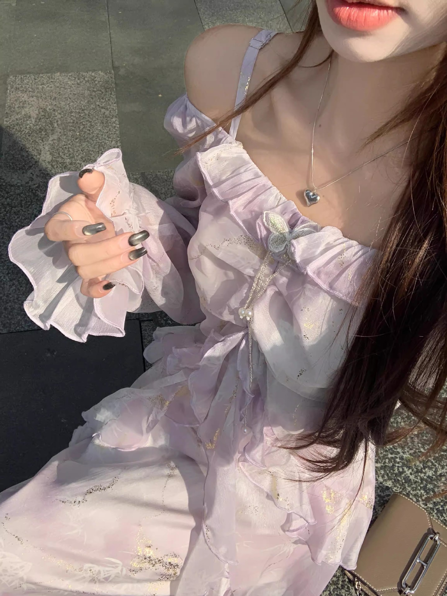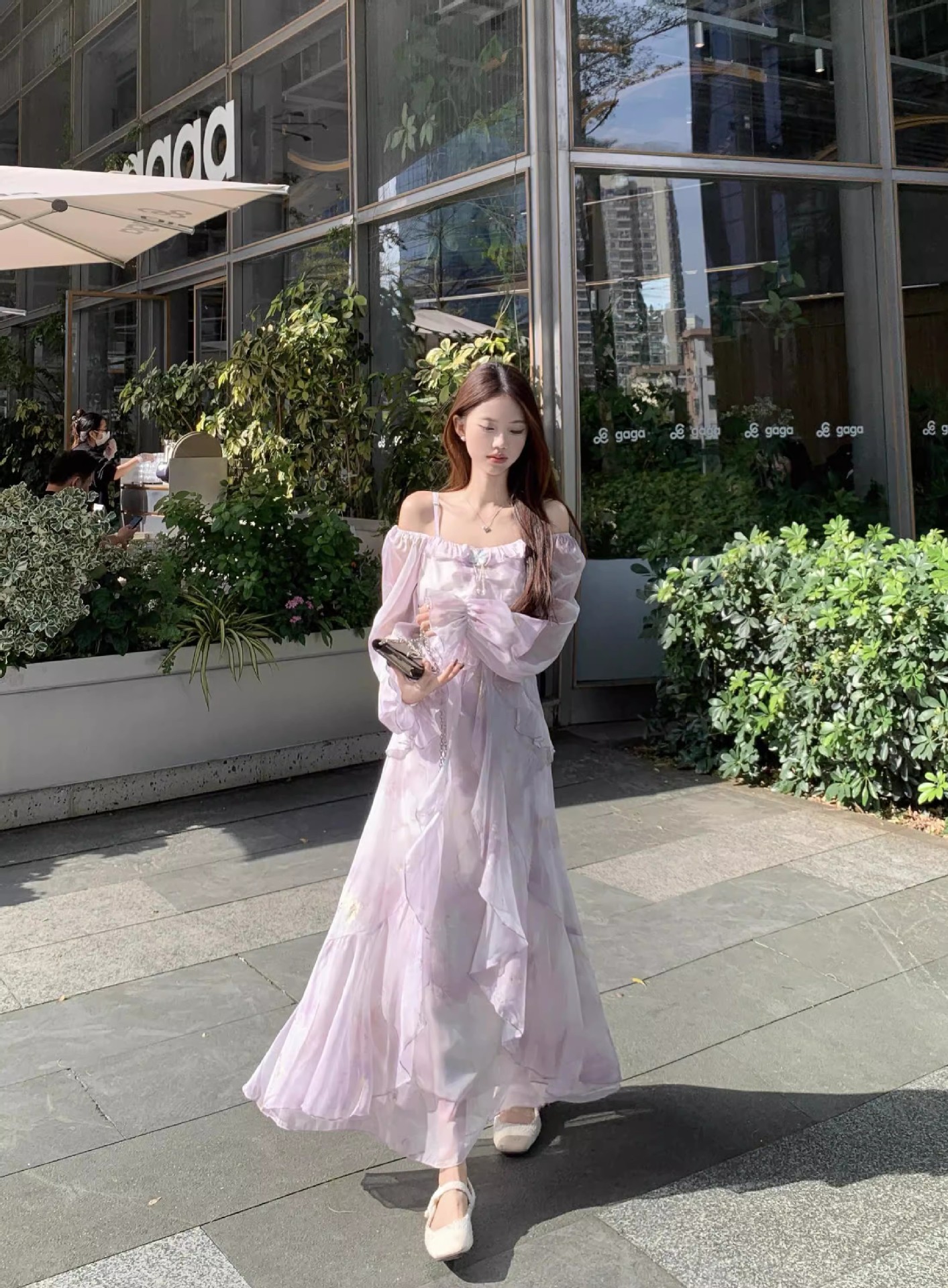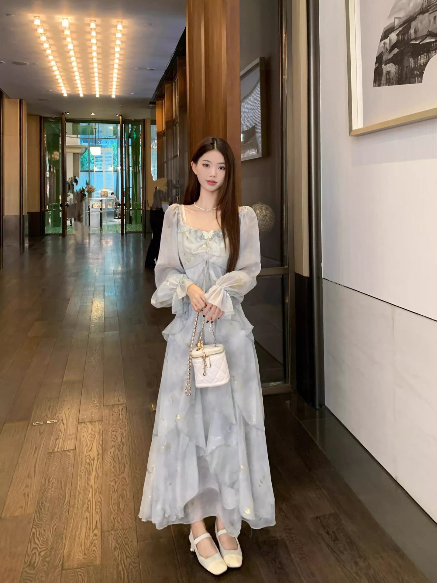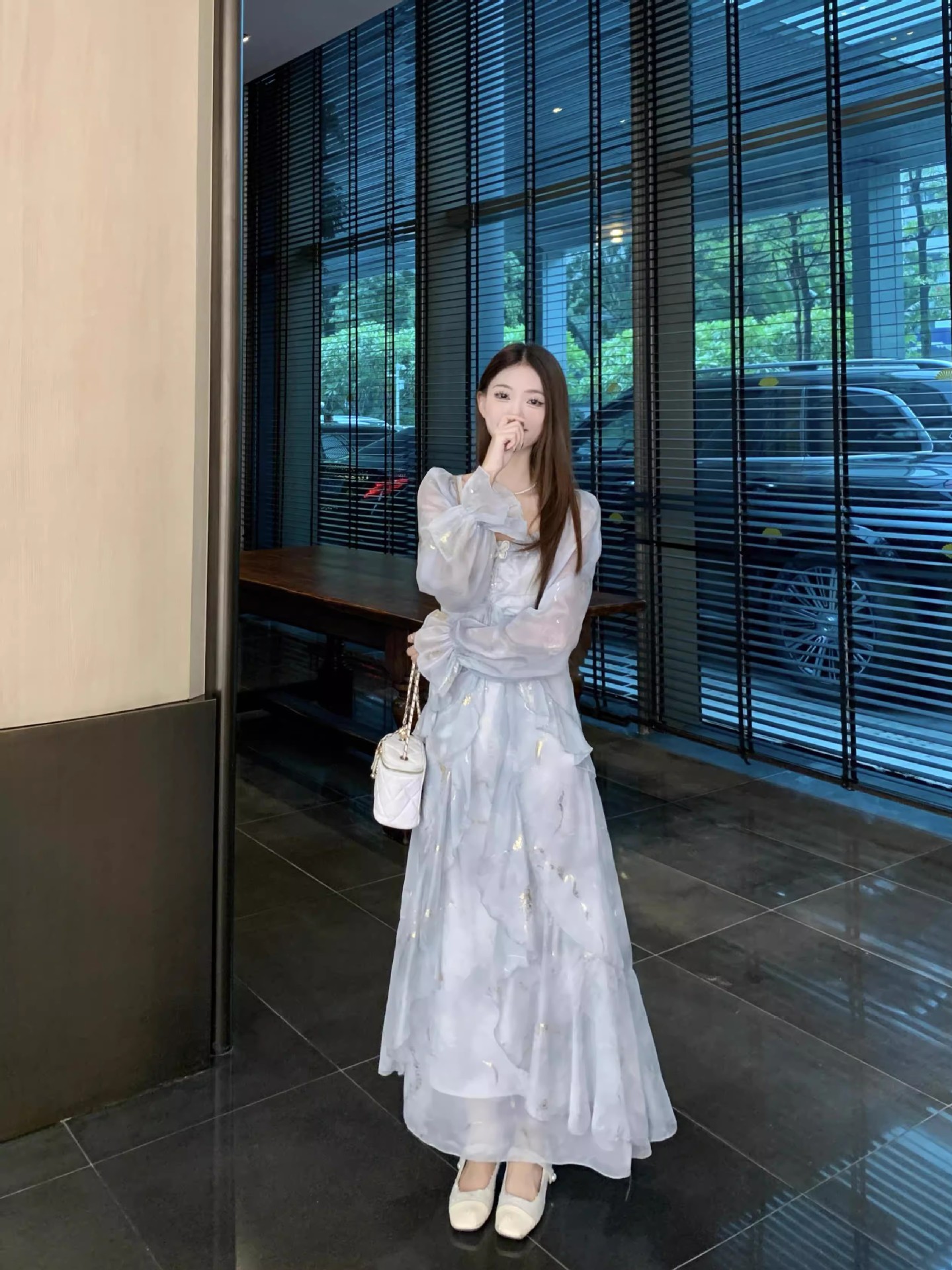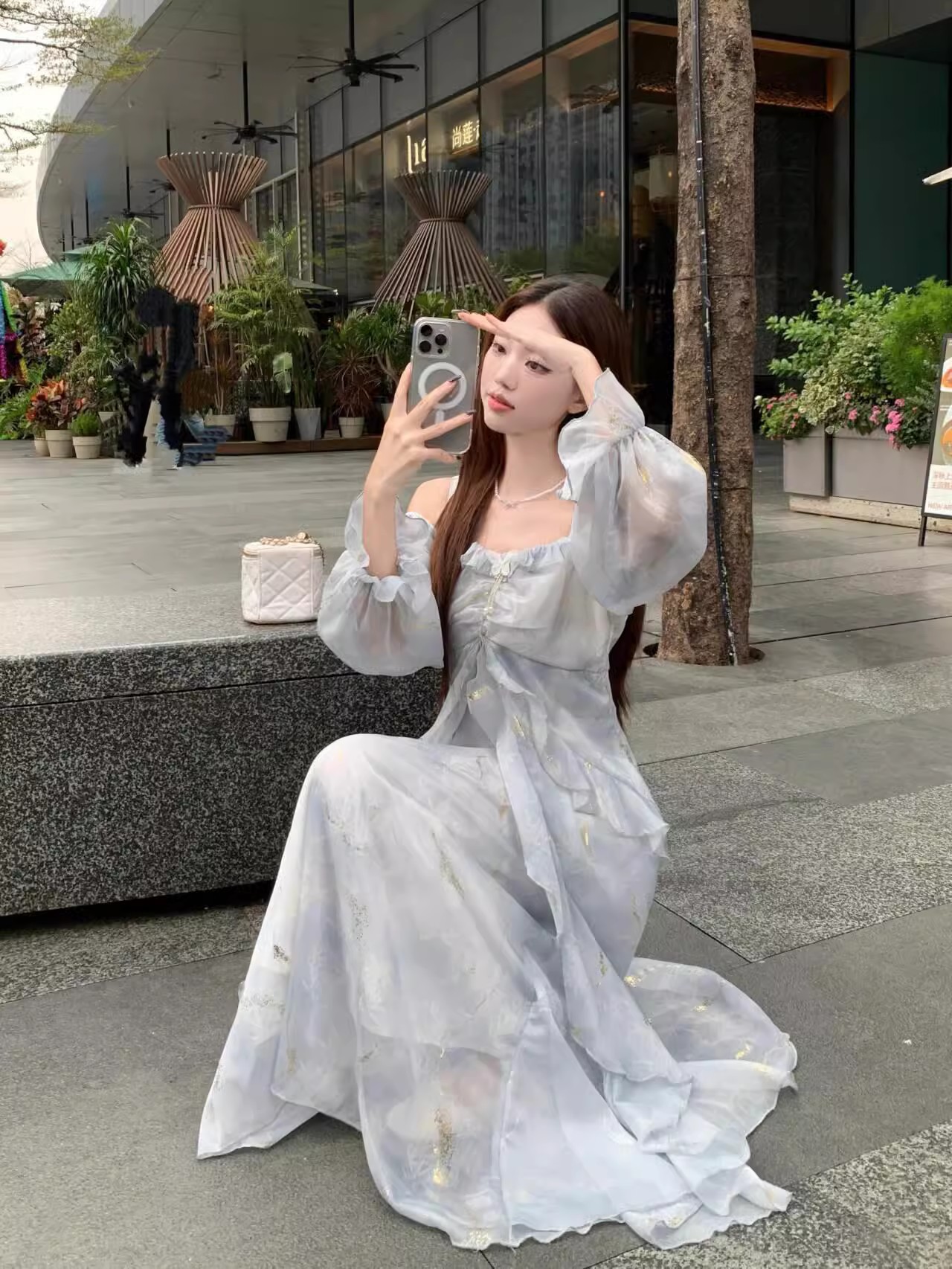 슈퍼 인기 인터넷 축하 같은 스타일 소녀 패션 시폰 자수 요정 슬링 원피스 학생 플러스 사이즈 원피스스토어 가기