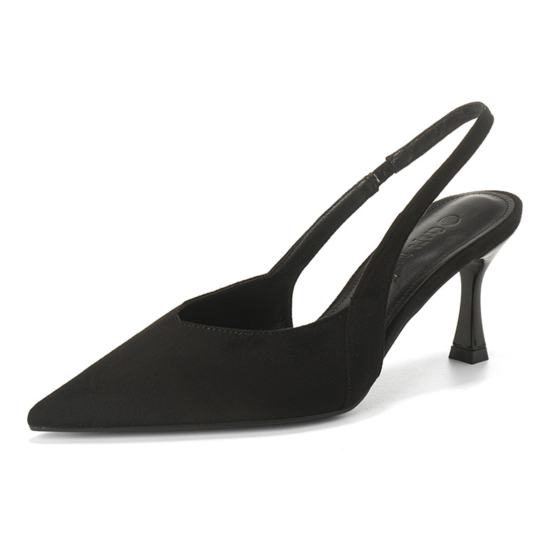 Cowhide 레오파드 무늬 하이힐 발가락 덮인 빈 샌들 여성 여름 유럽과 미국의 뾰족한 발가락 스틸레토 프렌치 스타일 트렌디 작은 싱글 레이어 신발