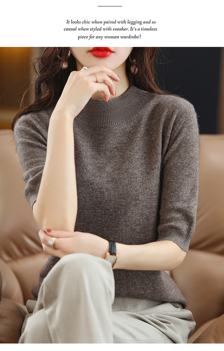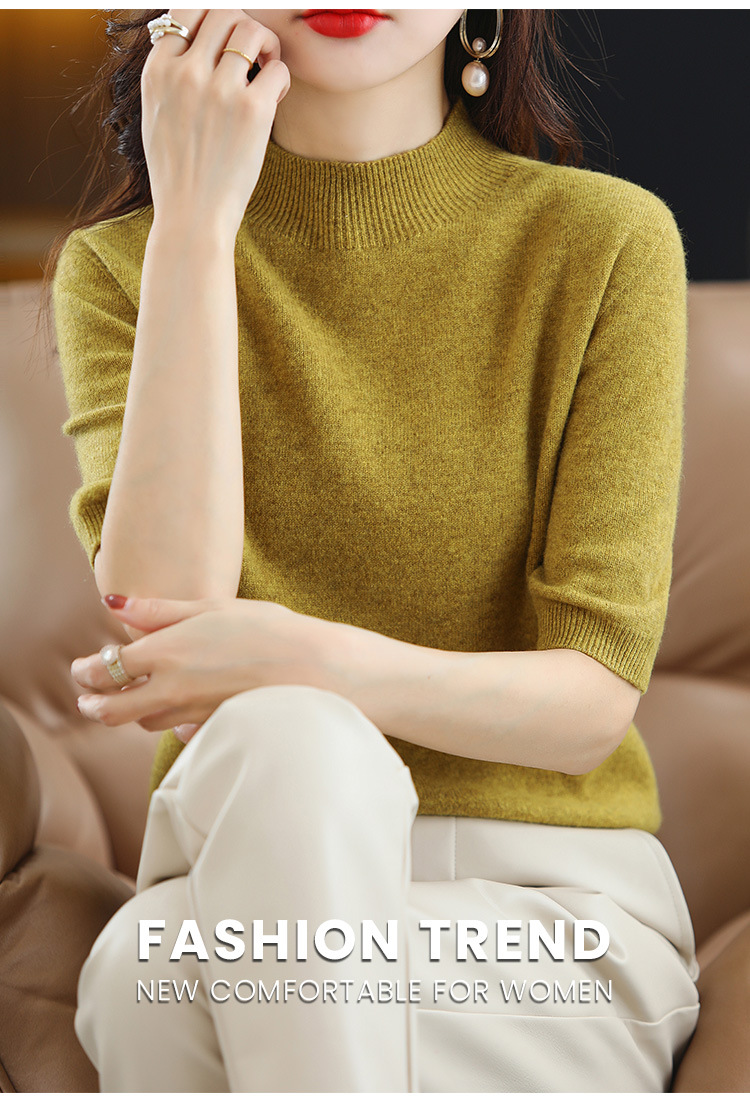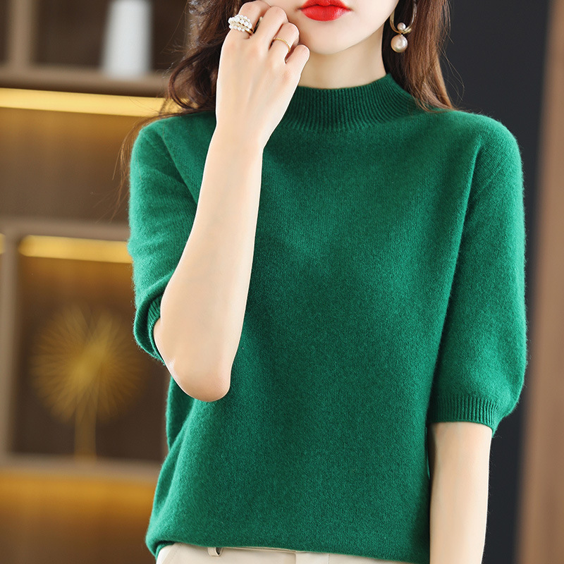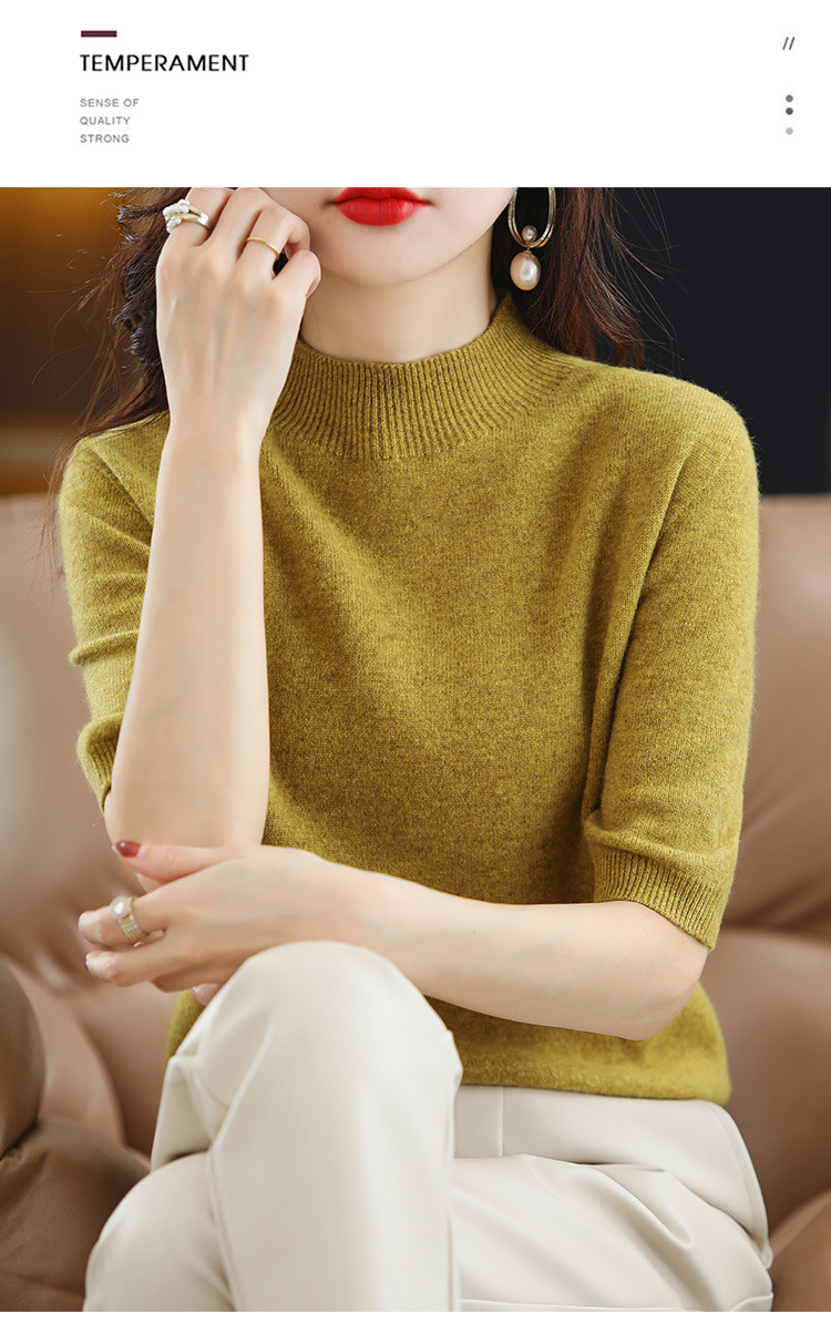 봄과 가을 새로운 중간 소매 여성의 반 터틀넥 터틀넥 보팅 셔츠 느슨한 내부 스웨터 반소매 스웨터 도매