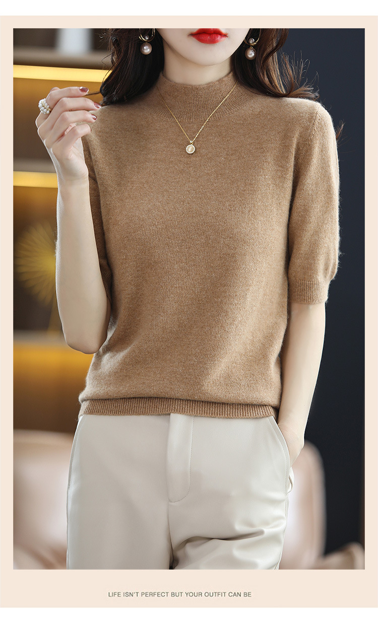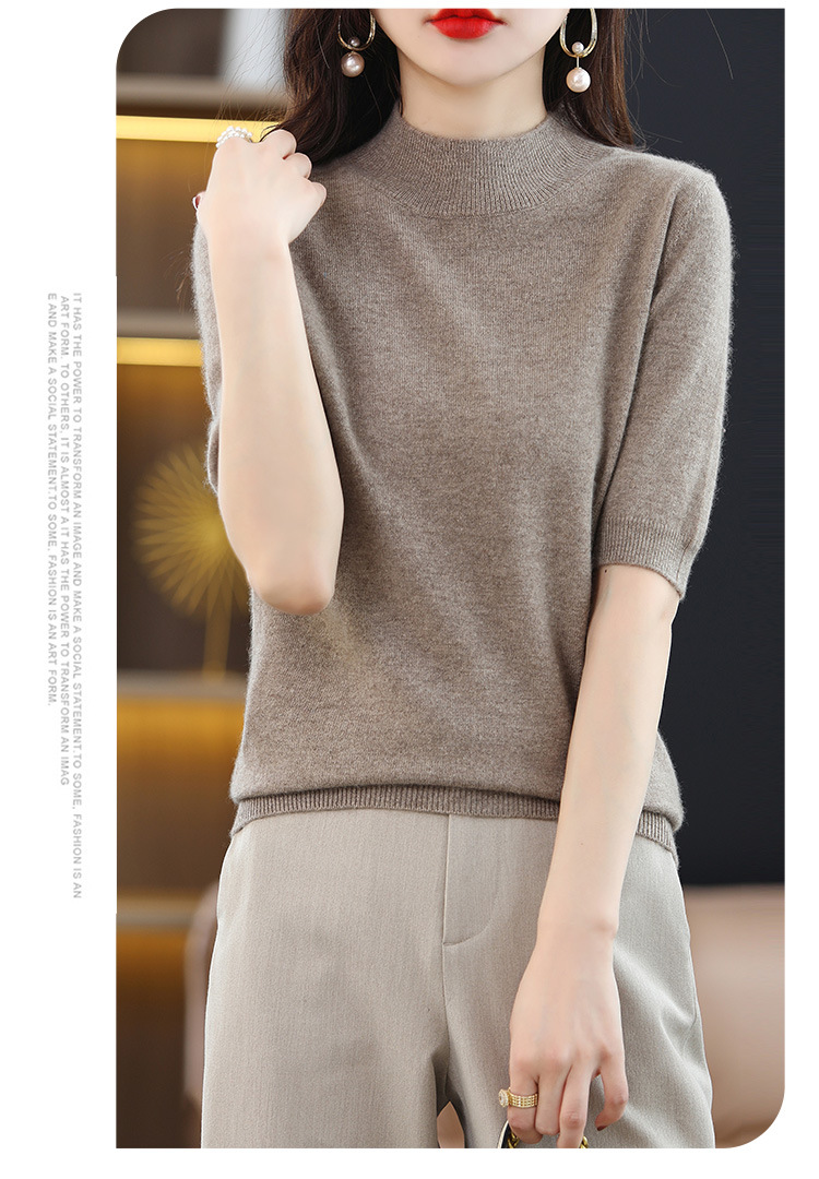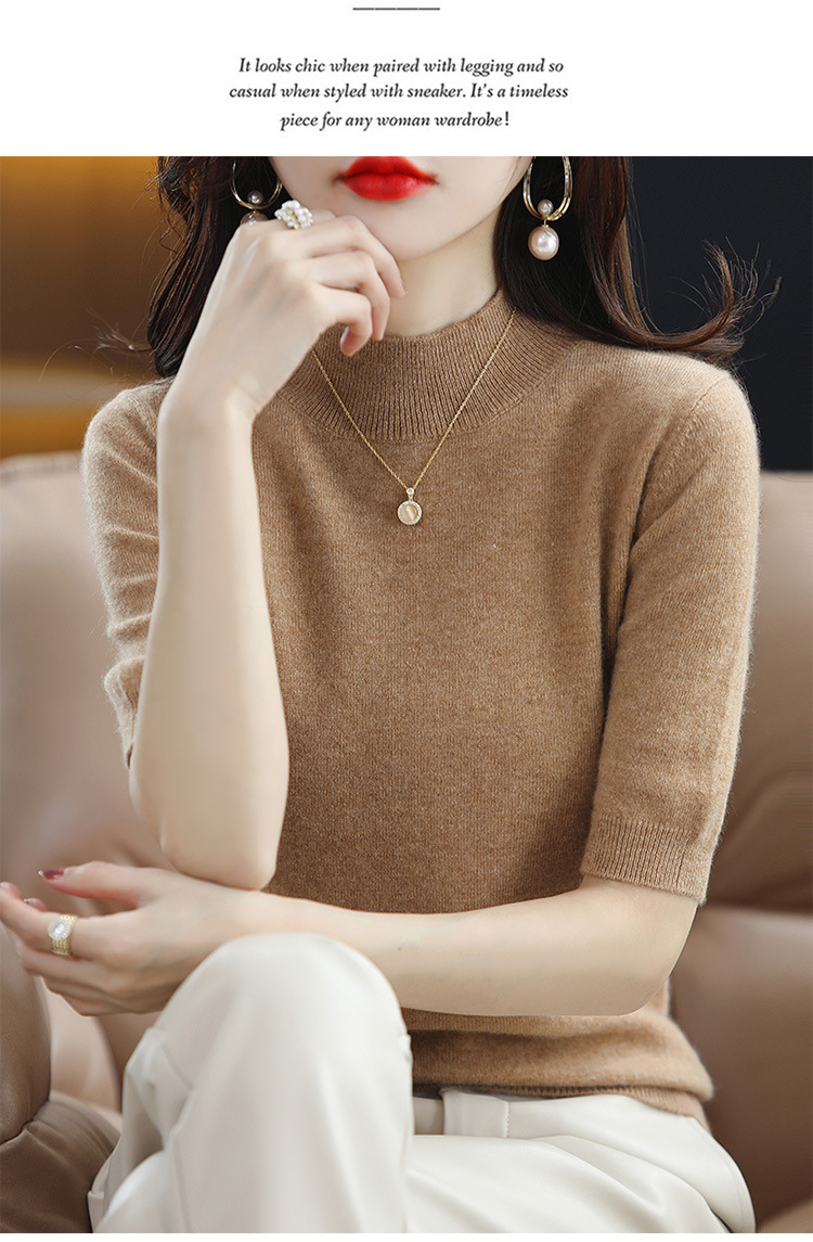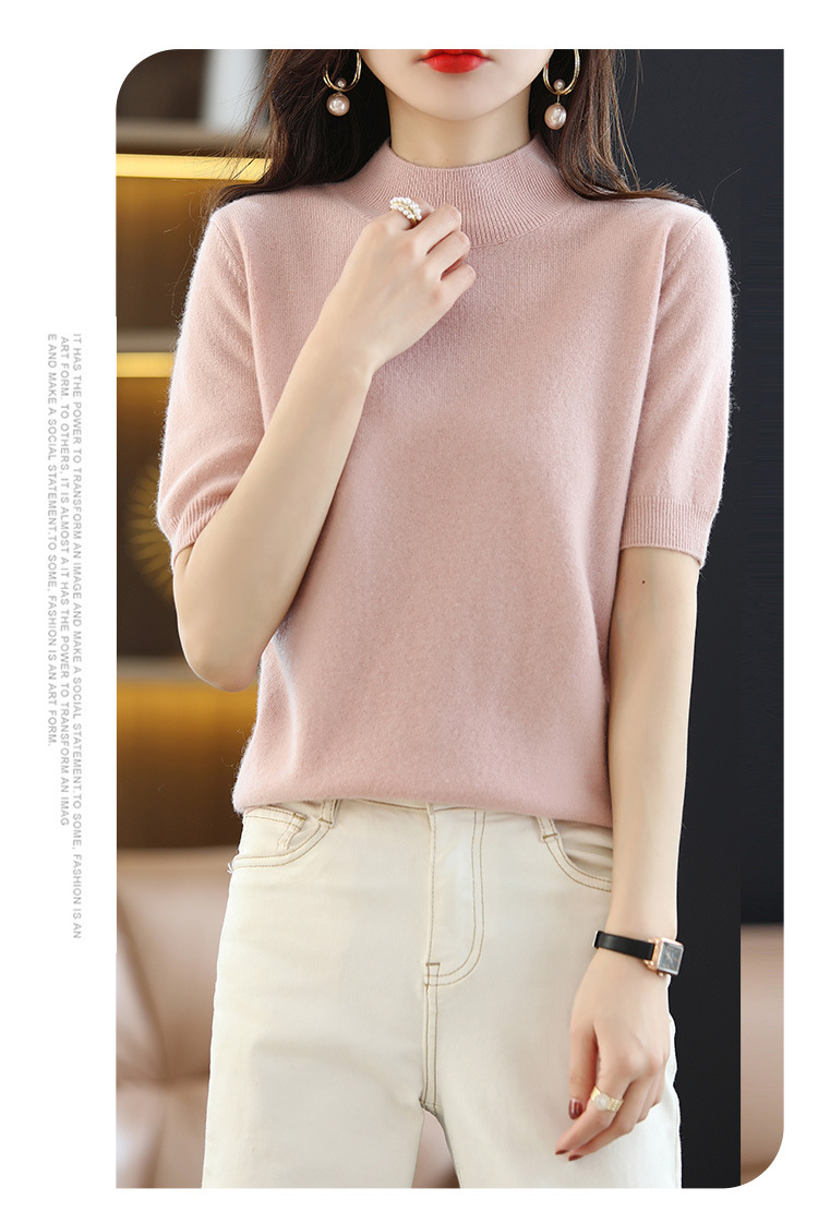봄과 가을 새로운 중간 소매 여성의 반 터틀넥 터틀넥 보팅 셔츠 느슨한 내부 스웨터 반소매 스웨터 도매