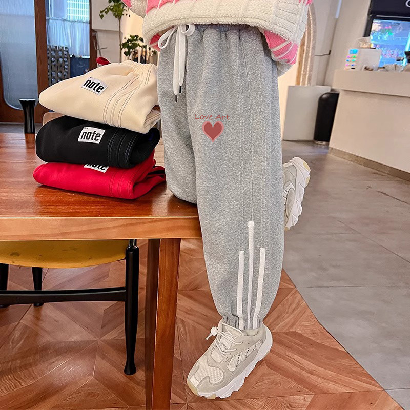 소녀 스포츠 바지 봄과 가을 겨울 어린이 새 바지 큰 소년 소녀 스웨트 바지 넓은 다리 바지 기모 외부 착용스토어 가기