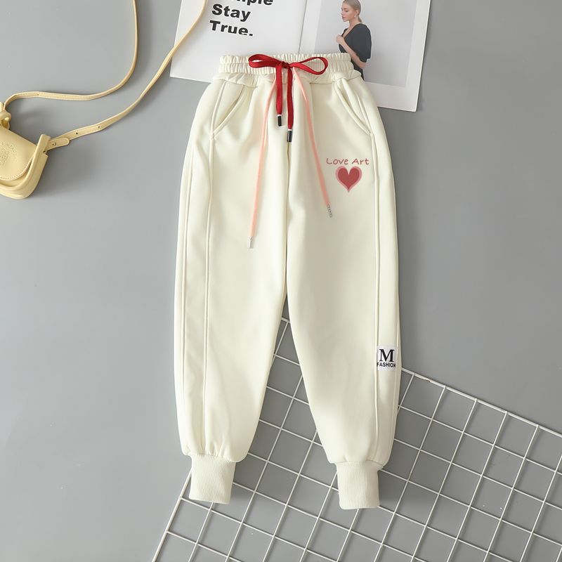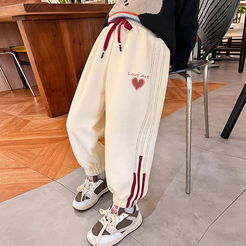 소녀 스포츠 바지 봄과 가을 겨울 어린이 새 바지 큰 소년 소녀 스웨트 바지 넓은 다리 바지 기모 외부 착용