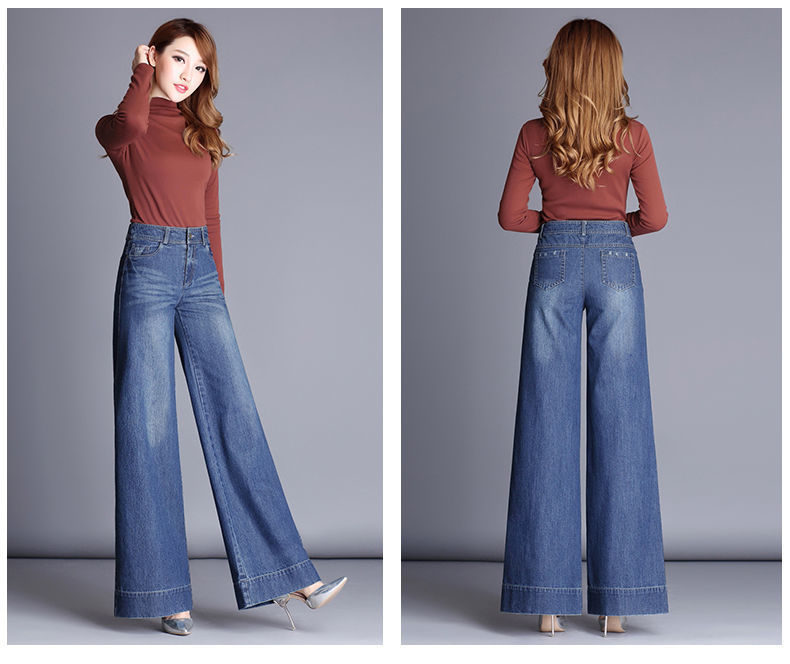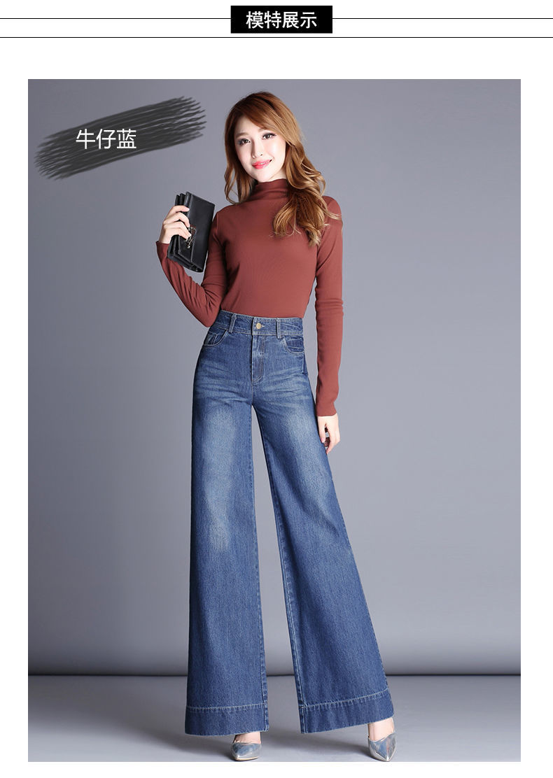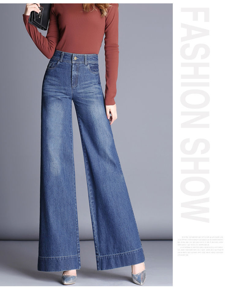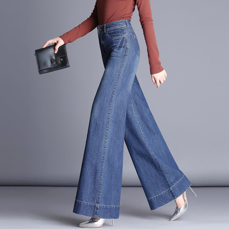 2024 가을 데님 와이드 팬츠 여성 바지 하이 웨이스트 스트레이트 드레이프 바지 청바지 바닥 길이 바지 여성용 플레어 바지스토어 가기