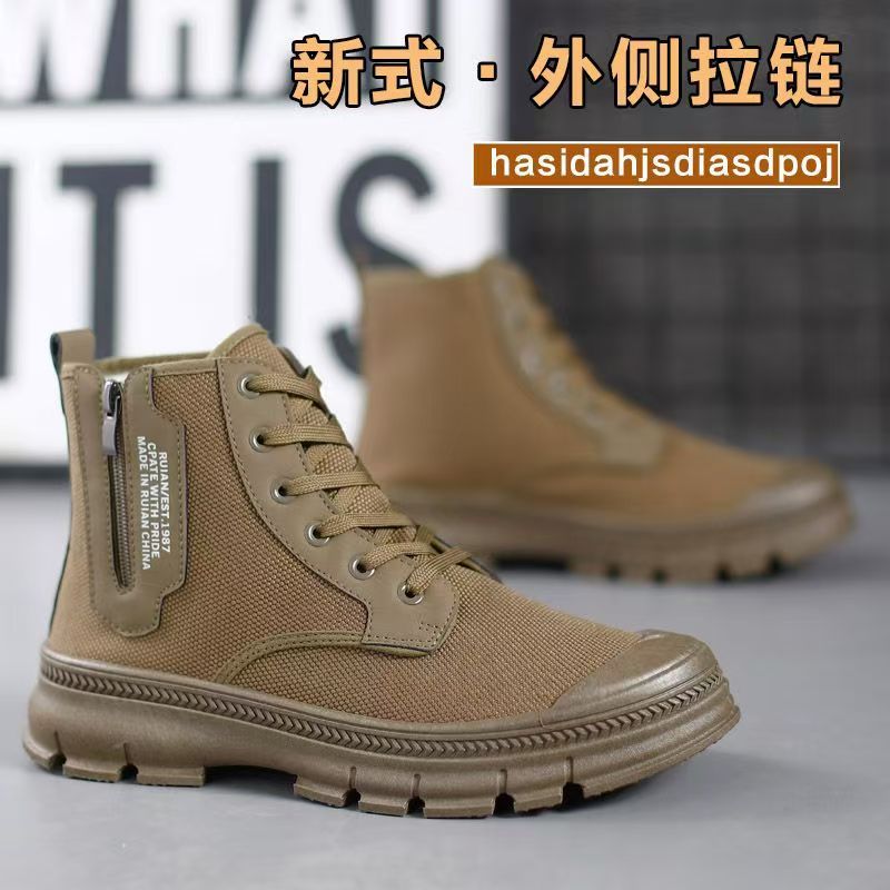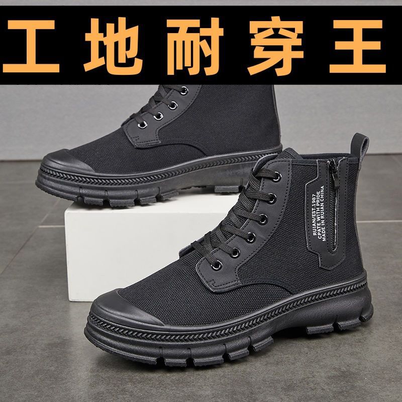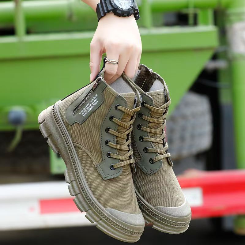 새로운 노동 보호 통기성 미끄럼 방지 내마모성 부드러운 밑창 건설 현장 경량 하이탑 마틴 등산 작업화 남성용스토어 가기