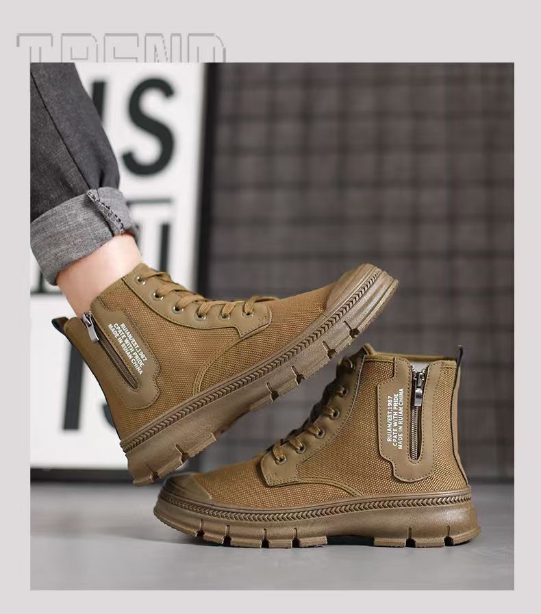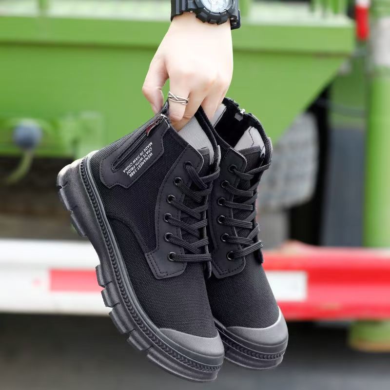 새로운 노동 보호 통기성 미끄럼 방지 내마모성 부드러운 밑창 건설 현장 경량 하이탑 마틴 등산 작업화 남성용