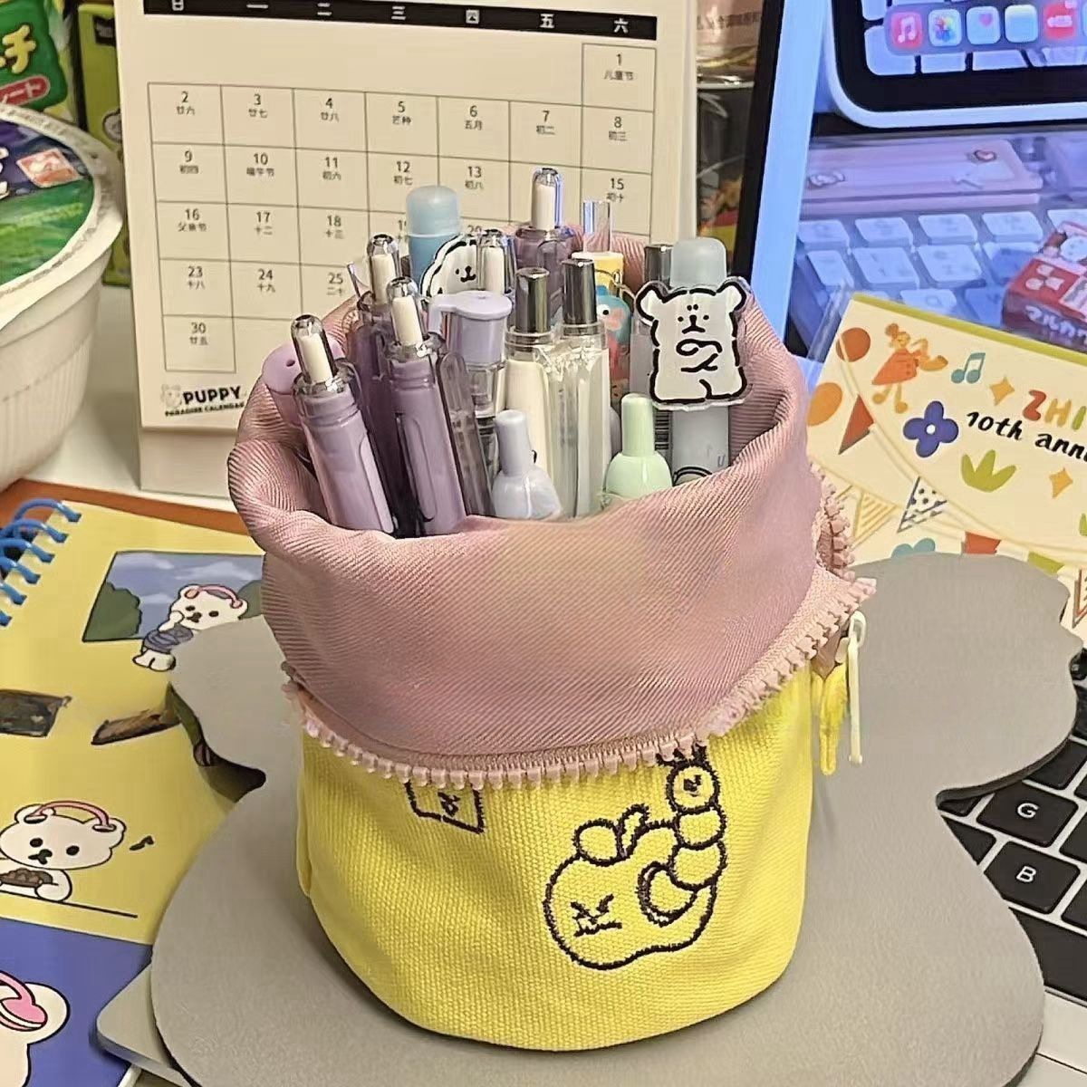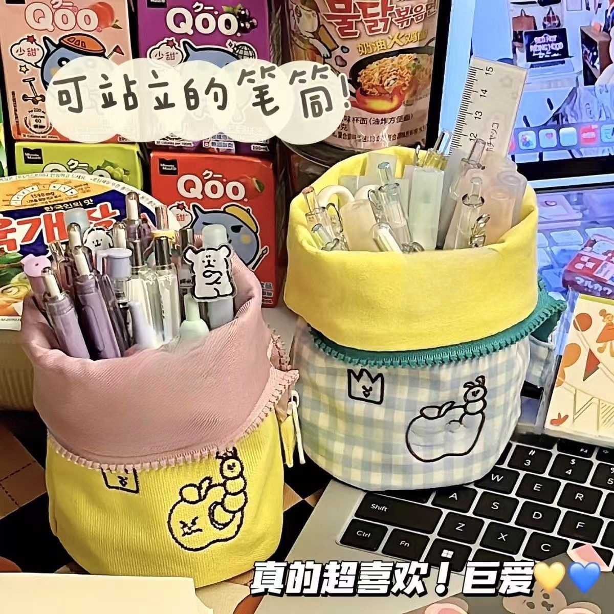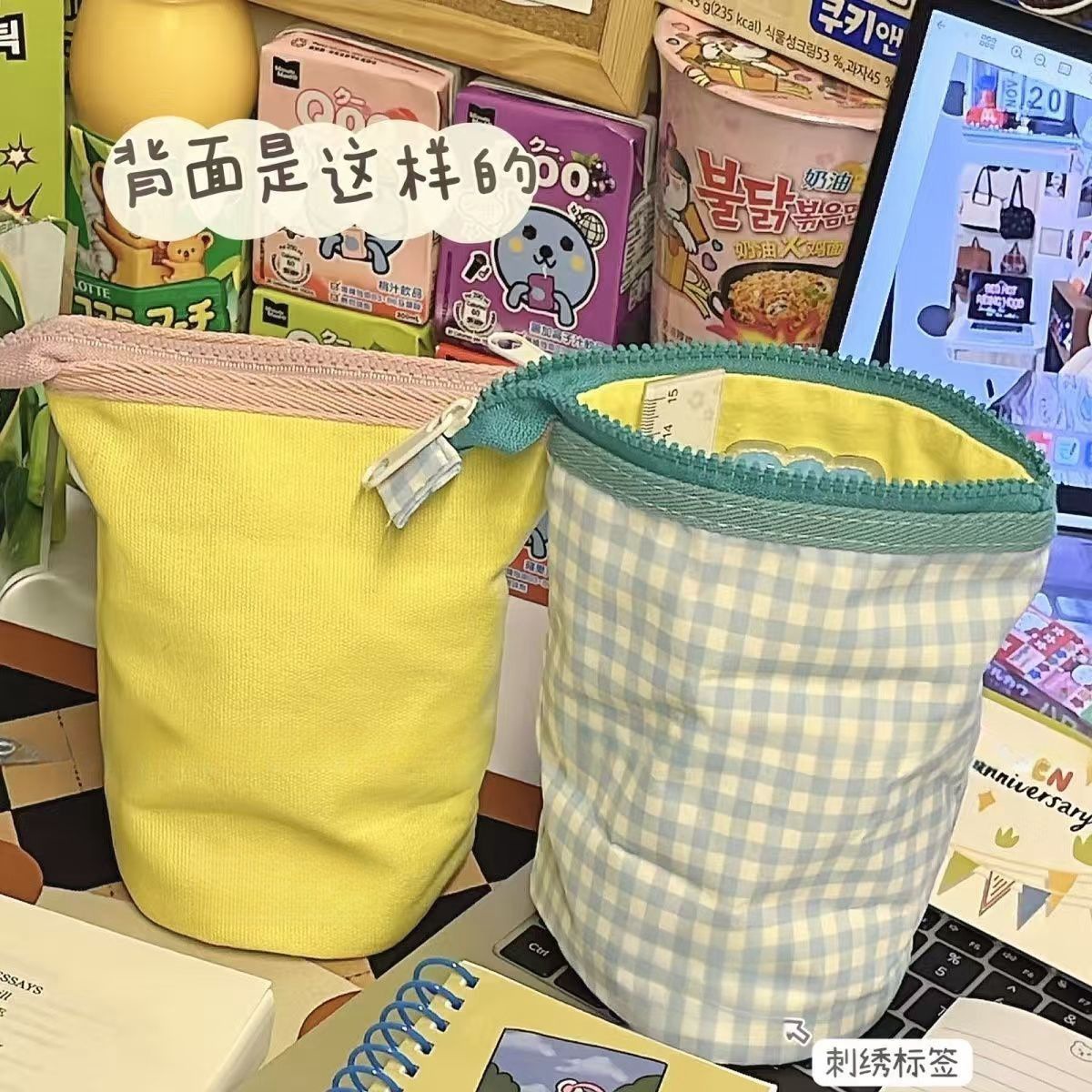 같은 스타일의 일본 스타일 창조적 인 펜 컨테이너 높은 색상 가치 여성 학생 수직 접이식 연필 가방 대용량 문구 연필 케이스스토어 가기