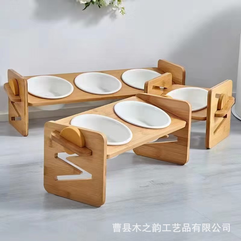 고양이 그릇 랙 대나무 동물 용품 피더 높이 조절 개 식기 식수 랙 세라믹 더블 그릇 식기 랙스토어 가기
