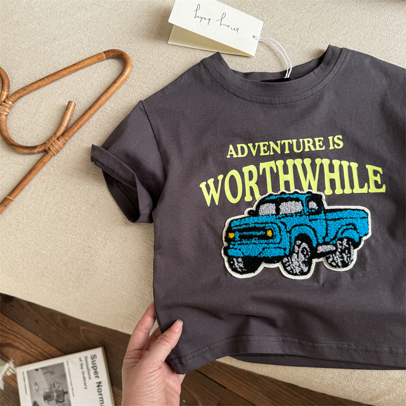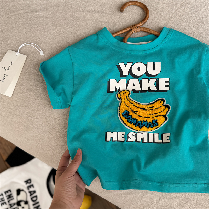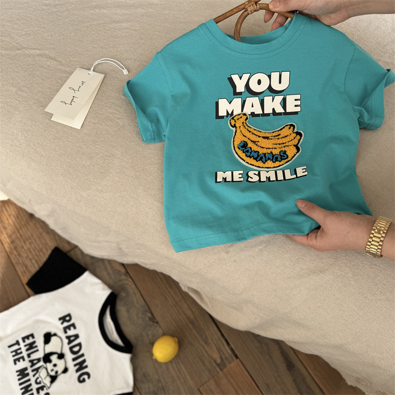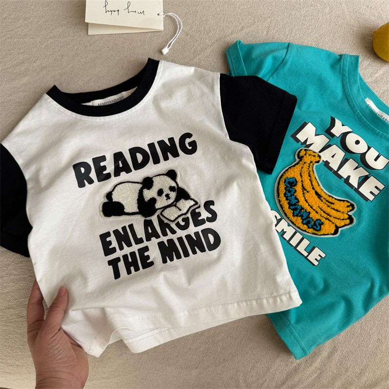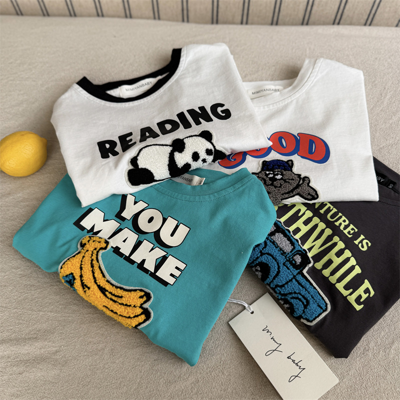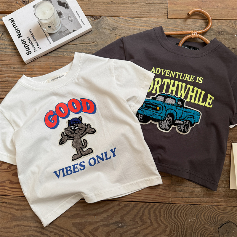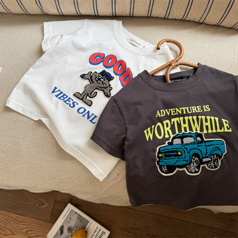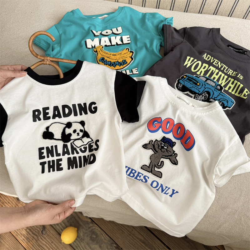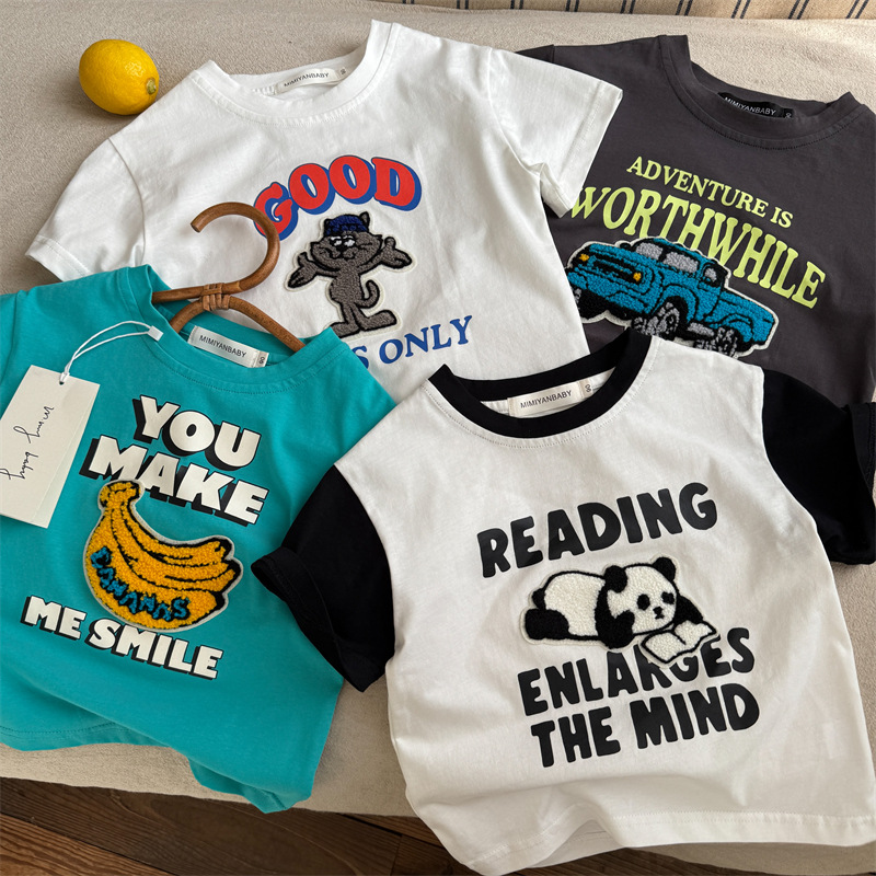 아동복 반소매 T 스테레오 트렌디 2025 여름 새로운 아기 만화 탑 여성 얇은 어린이 반팔 티셔츠 남성스토어 가기