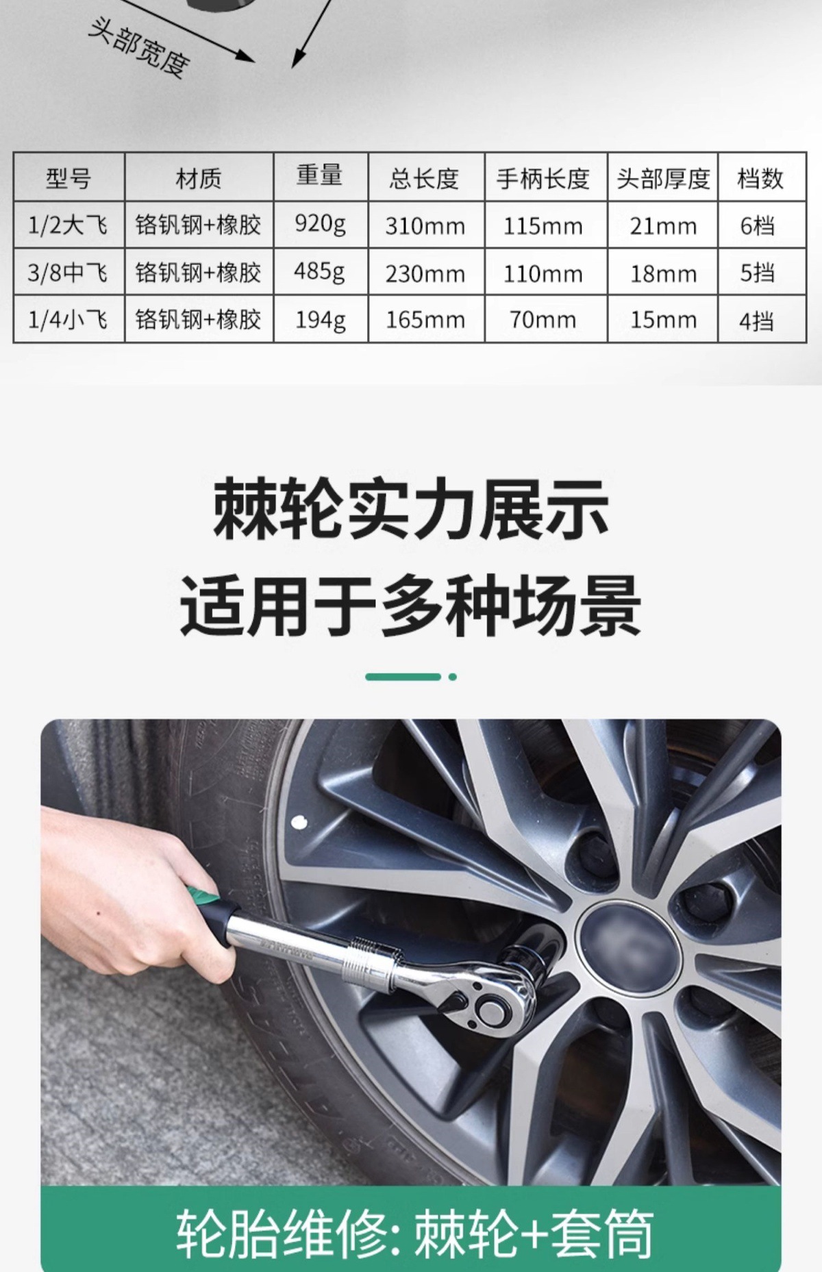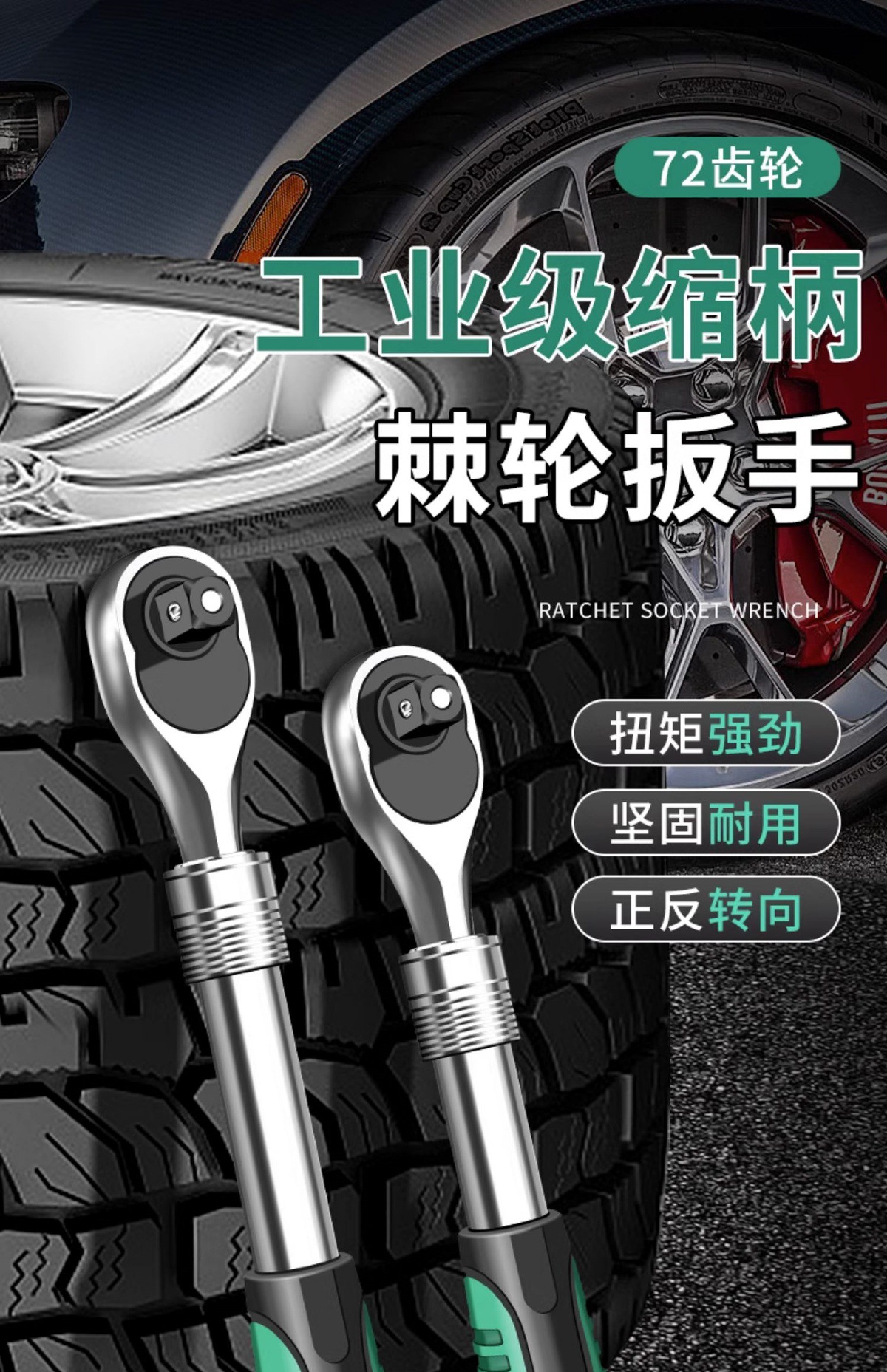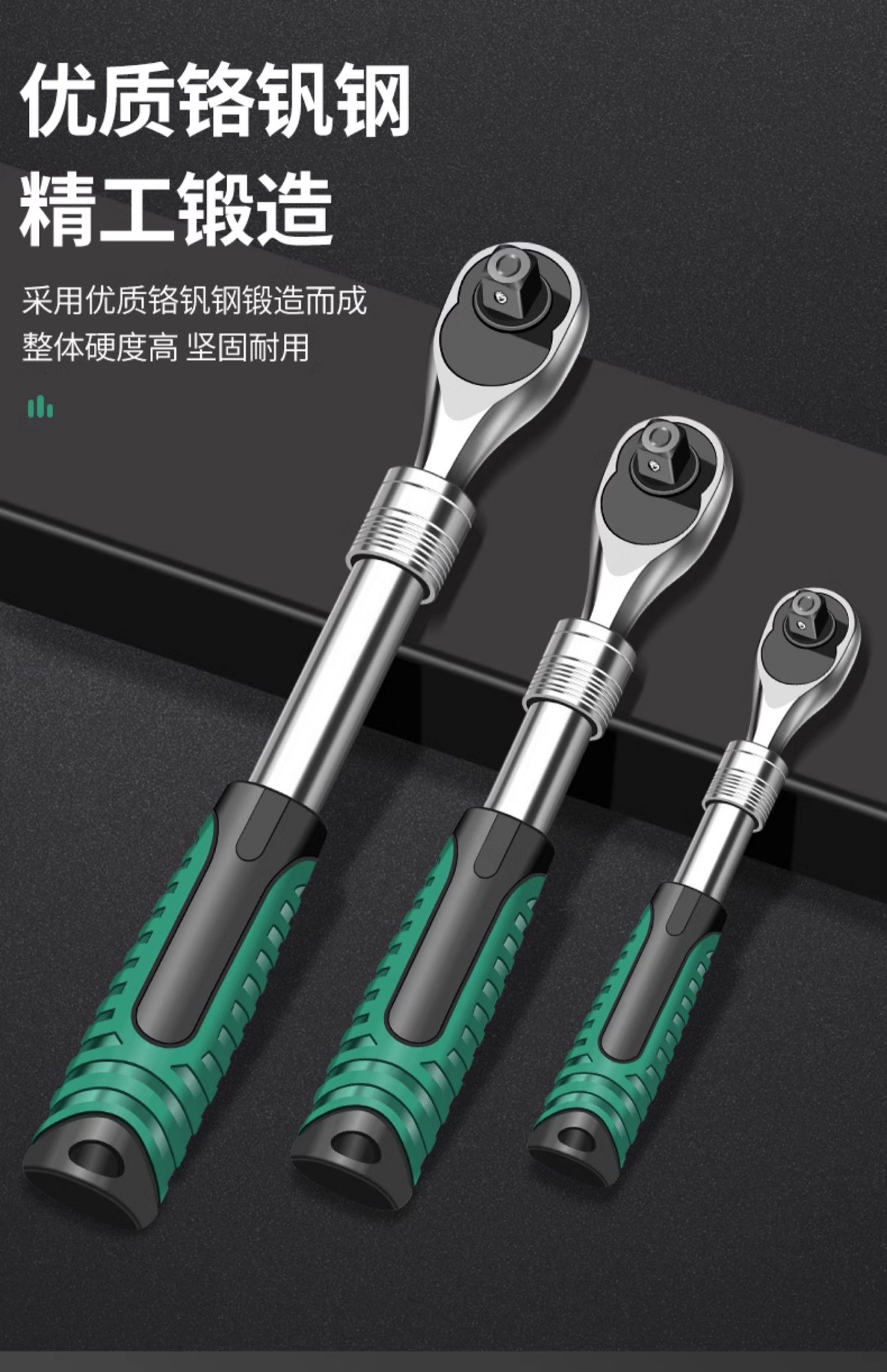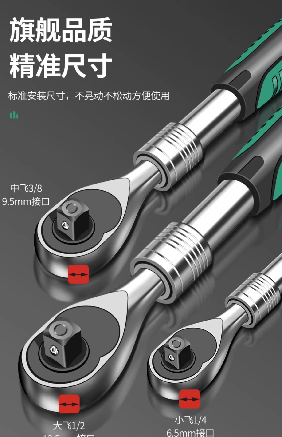 Baolian Dafei Zhongfei Xiaofei 래칫 텔레스코픽 렌치 자동 수리 도구 양방향 소매 72 기어 펄 니켈스토어 가기