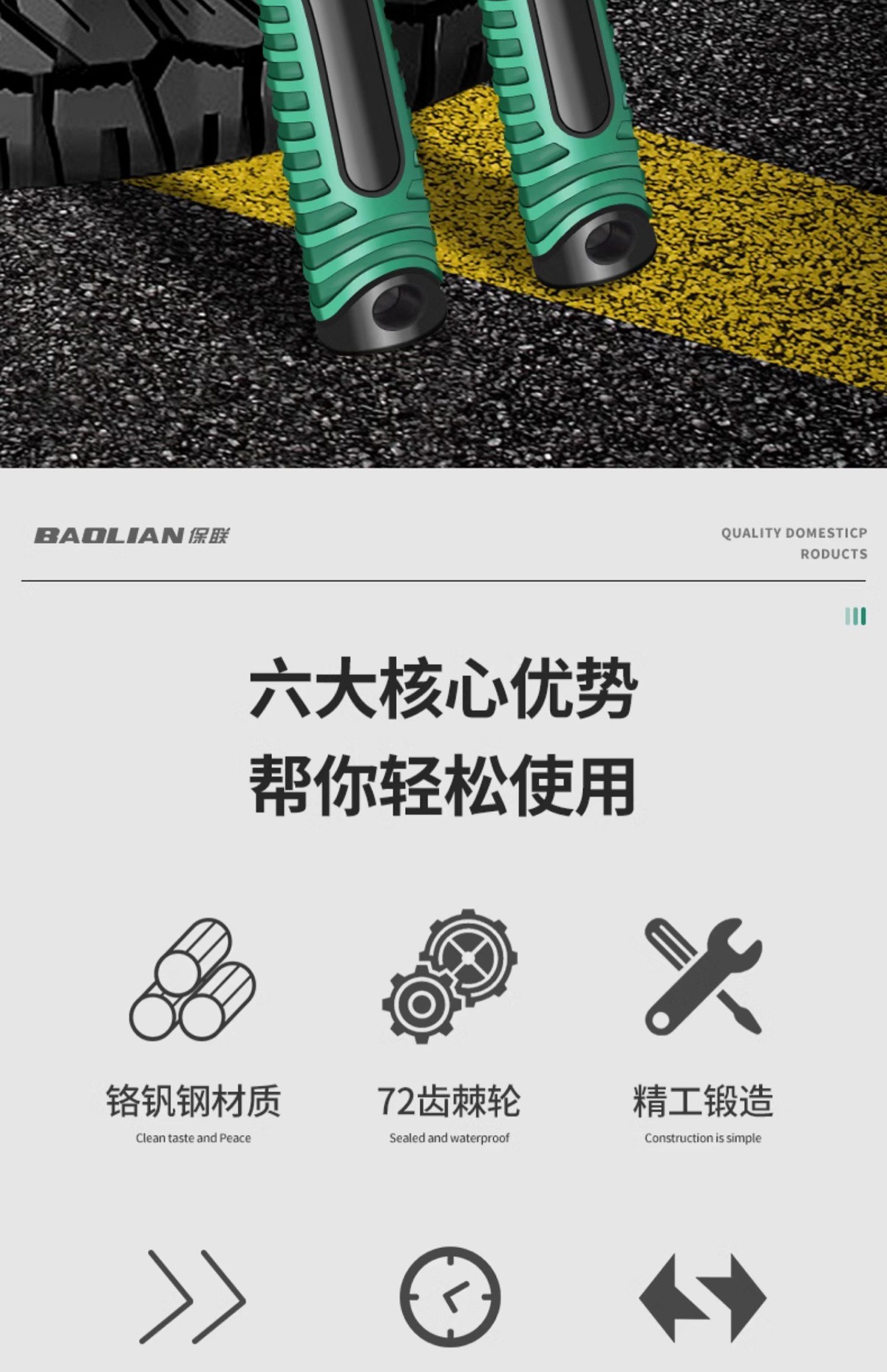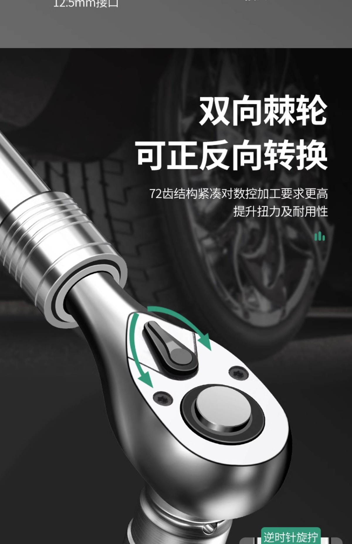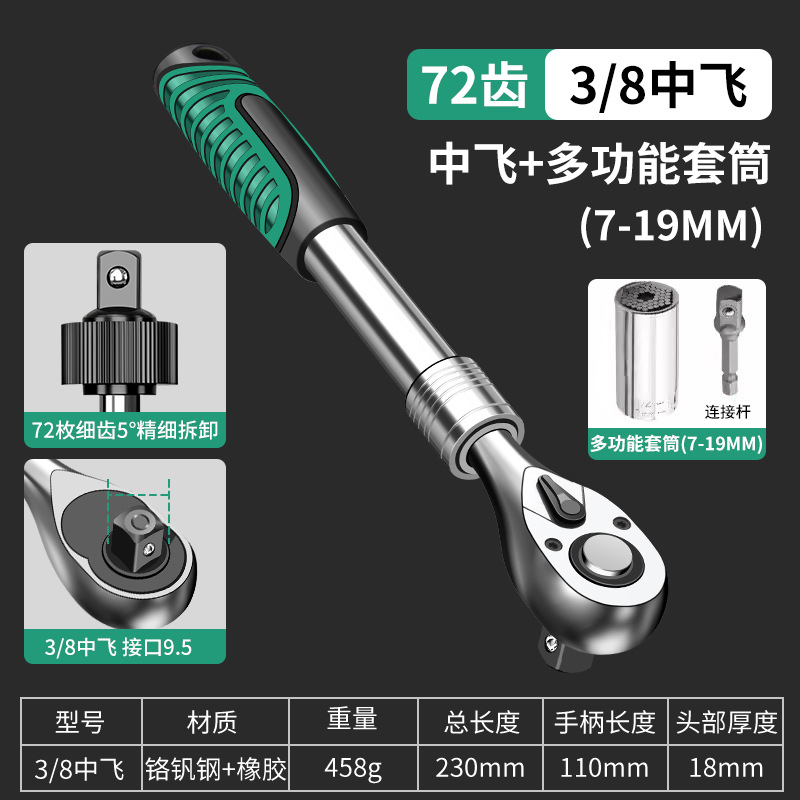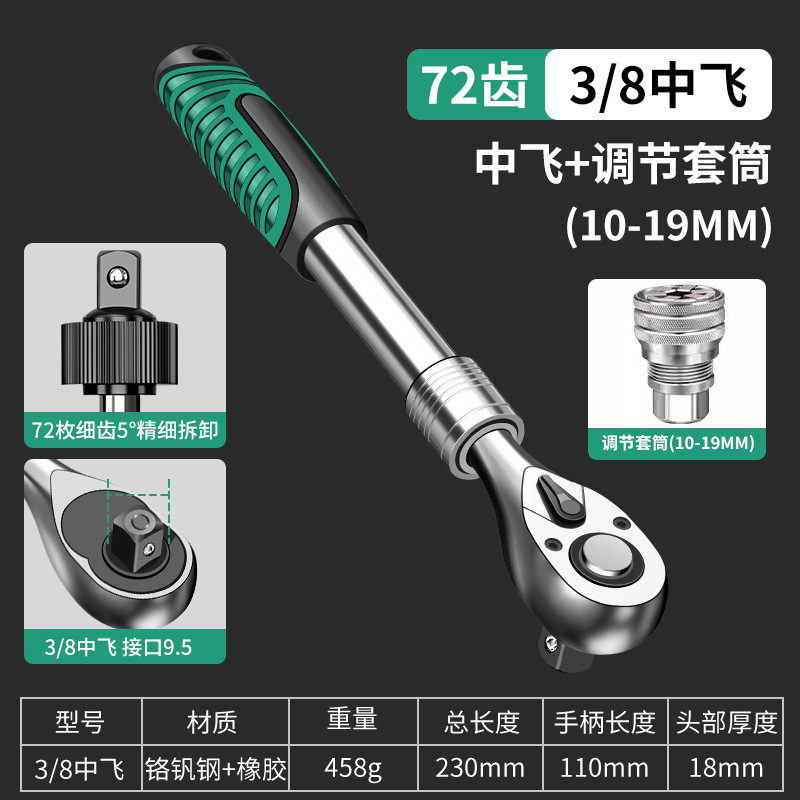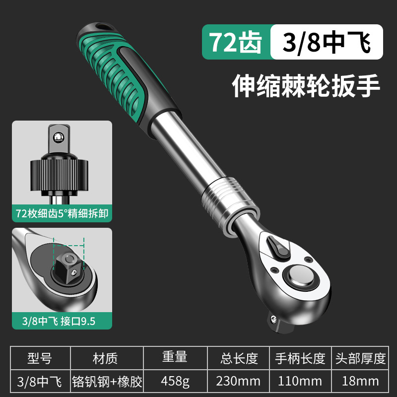Baolian Dafei Zhongfei Xiaofei 래칫 텔레스코픽 렌치 자동 수리 도구 양방향 소매 72 기어 펄 니켈