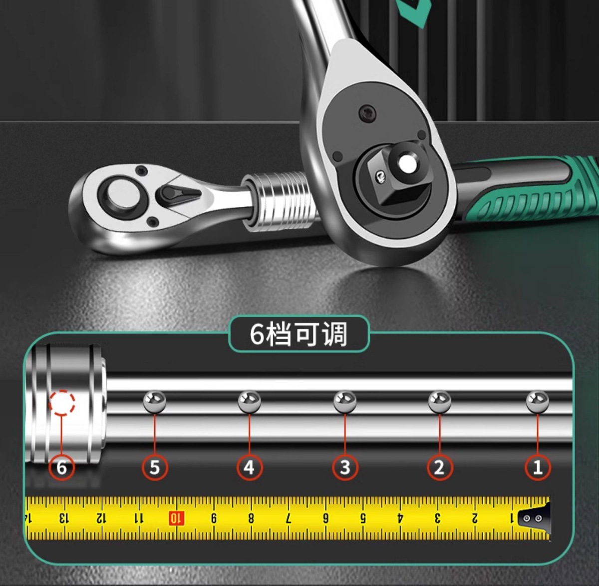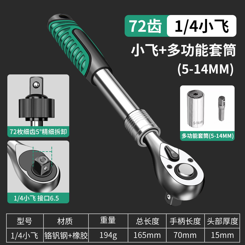 • 1/4 텔레스코픽 래칫 렌치-72 톱니 Xiaofei + 범용 소켓(5-14mm)