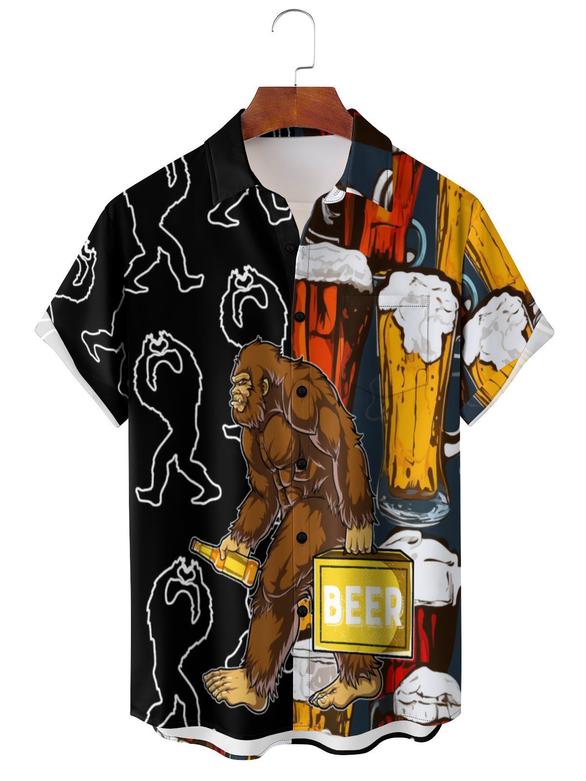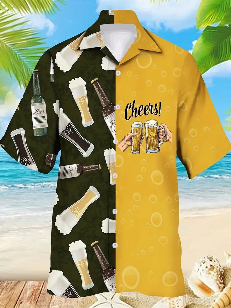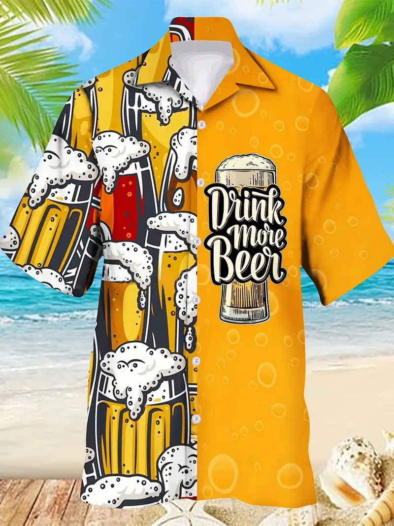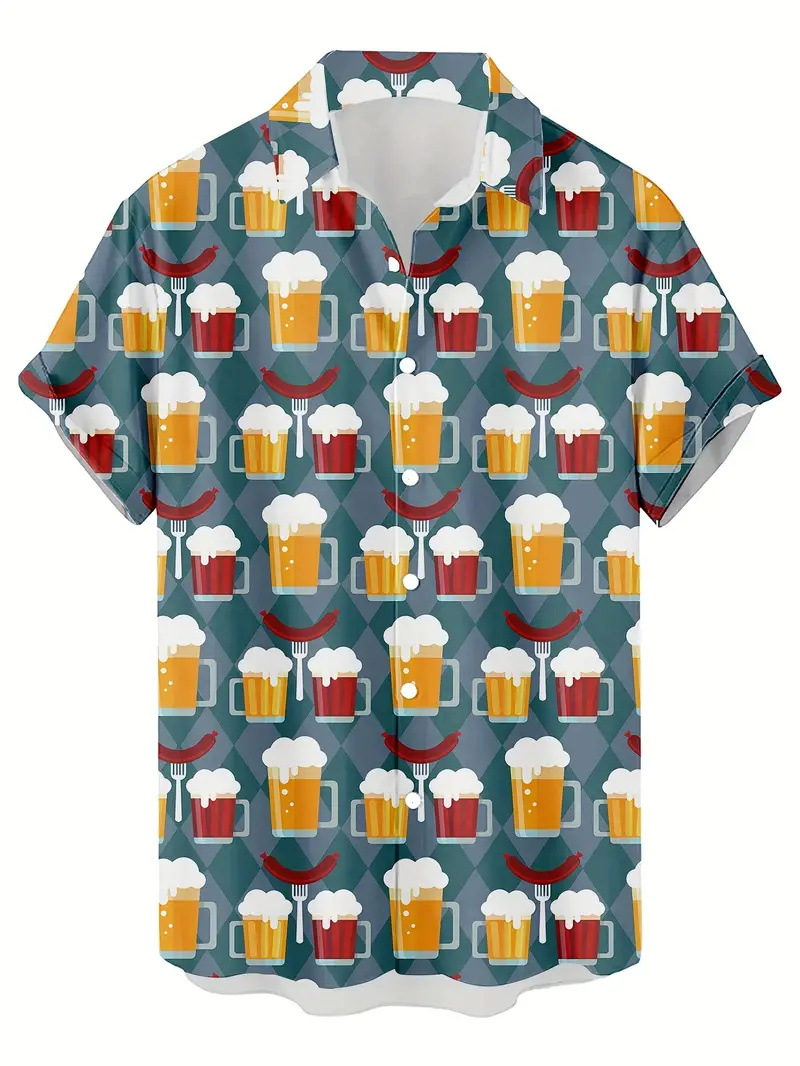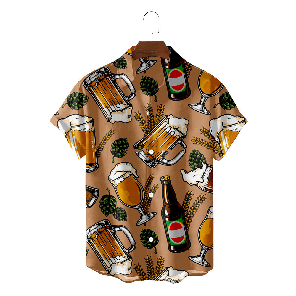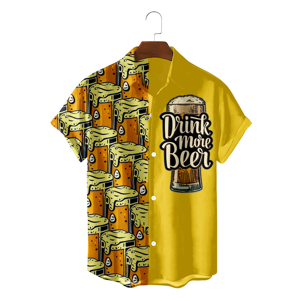 2025 남자의 새로운 독특한 3D 맥주 HD 인쇄 단일 가슴 랩 느슨한 편안한 반팔 셔츠스토어 가기
