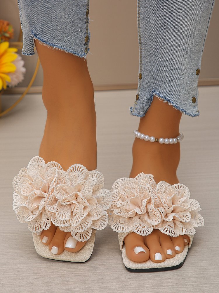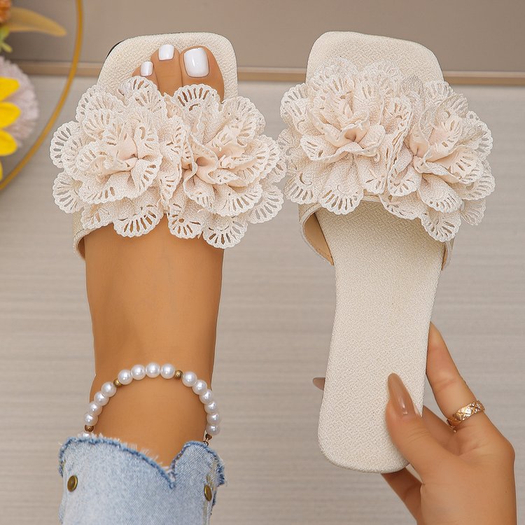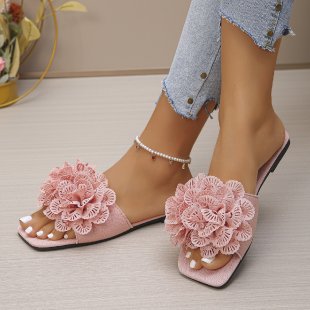 국경 간 대외 무역 슬리퍼 여성 2025 봄 새로운 여성 패션 꽃 캐주얼 플랫 비치 샌들