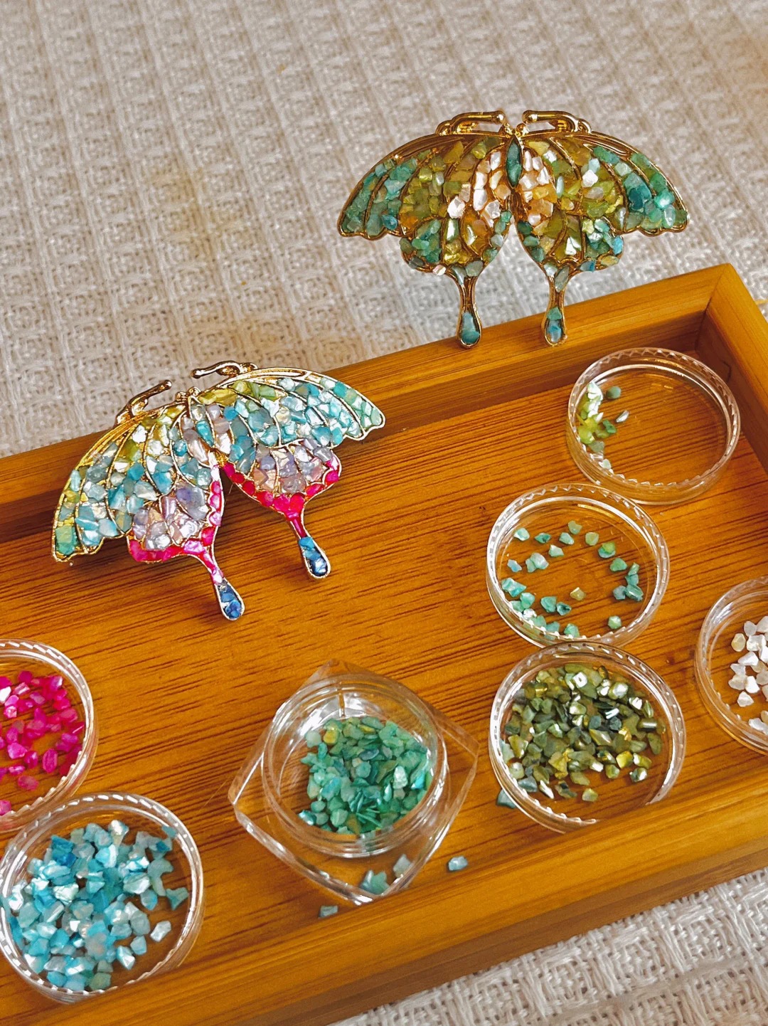 • ◆★◆무형문화재 자개 DIY [머리핀/브로치/머리핀/팔찌] - [2개] 나비머리장식 1개 + 단색 자개 1개◆★◆