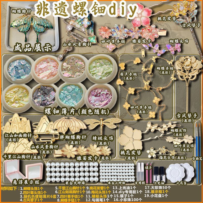 • ◆★◆무형문화재 자개 DIY [머리핀/브로치/머리핀/팔찌] - 럭셔리 [36개] 주얼리 14종 + 자개 8색 + 소재 컬렉션◆★◆