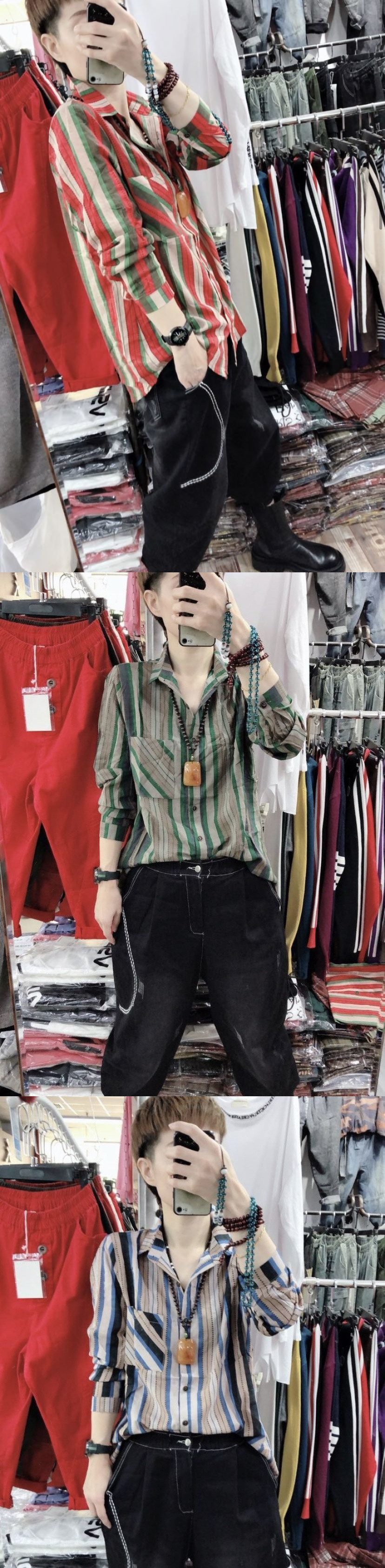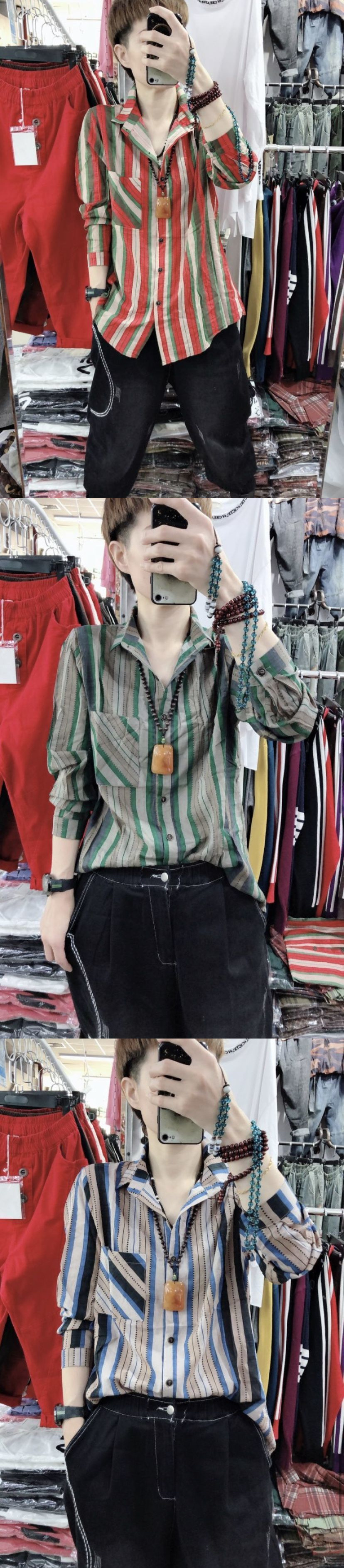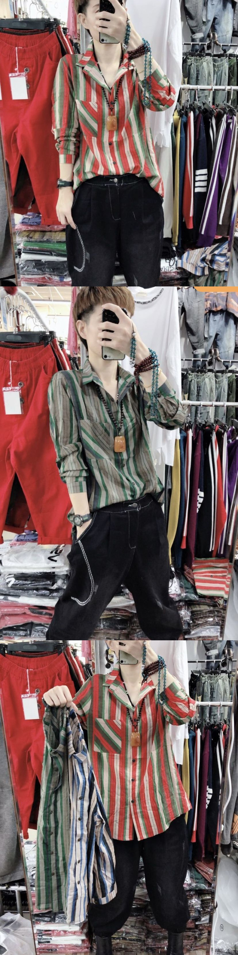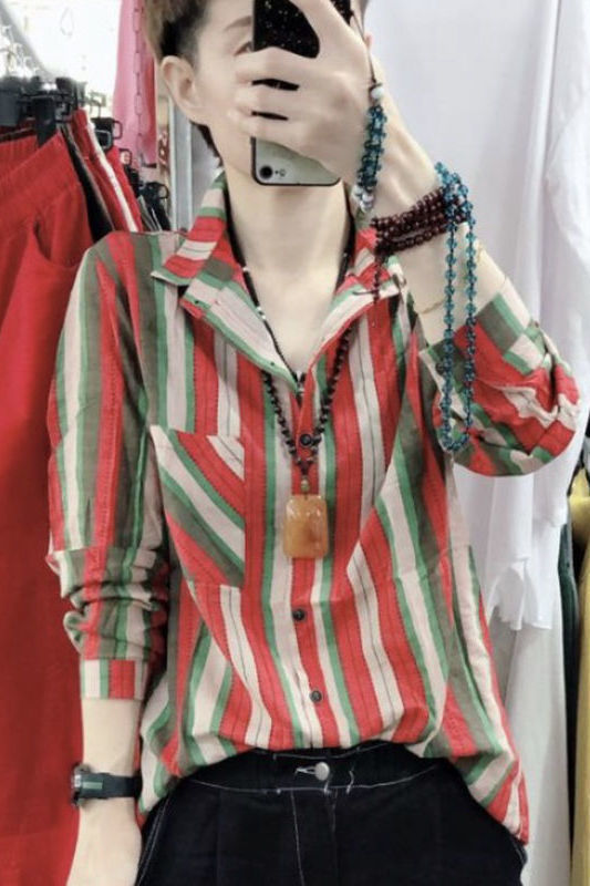 2025 봄 새로운 줄무늬 셔츠 여성 느슨한 슬리밍 모든 경기 긴 소매베이스 셔츠 트렌디스토어 가기