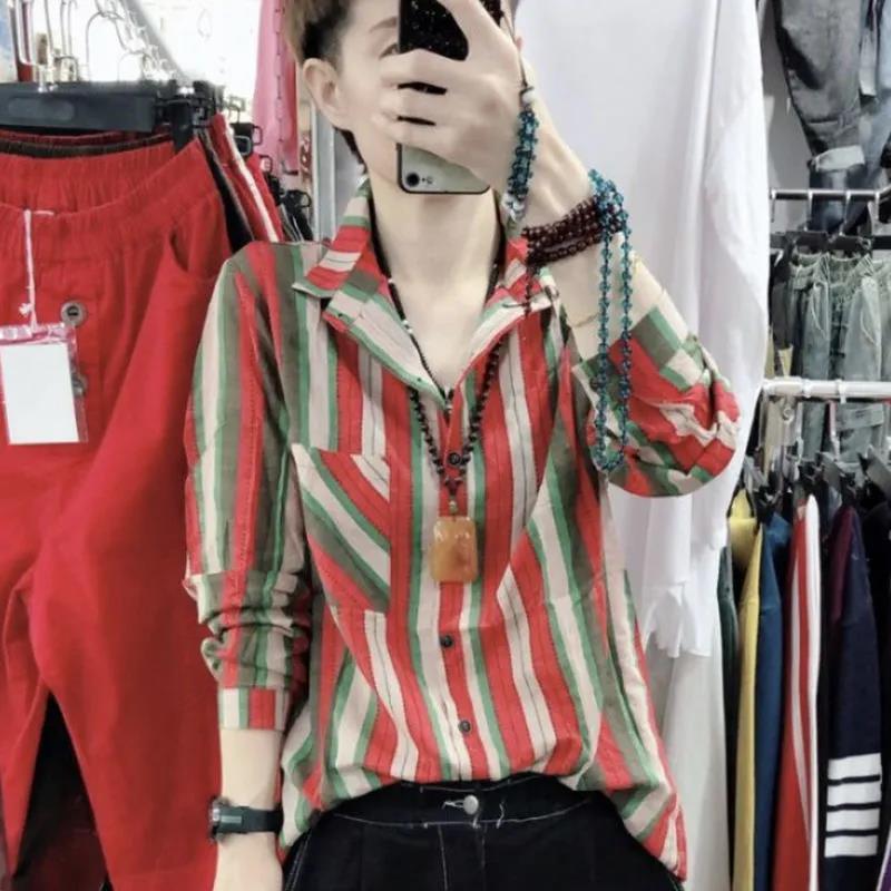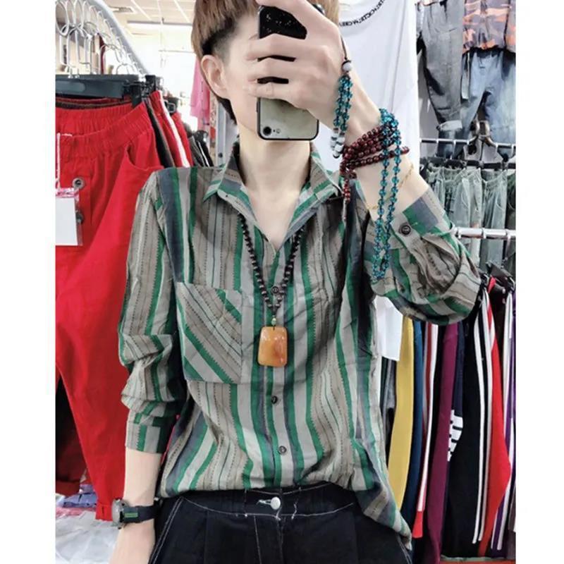 2025 봄 새로운 줄무늬 셔츠 여성 느슨한 슬리밍 모든 경기 긴 소매베이스 셔츠 트렌디