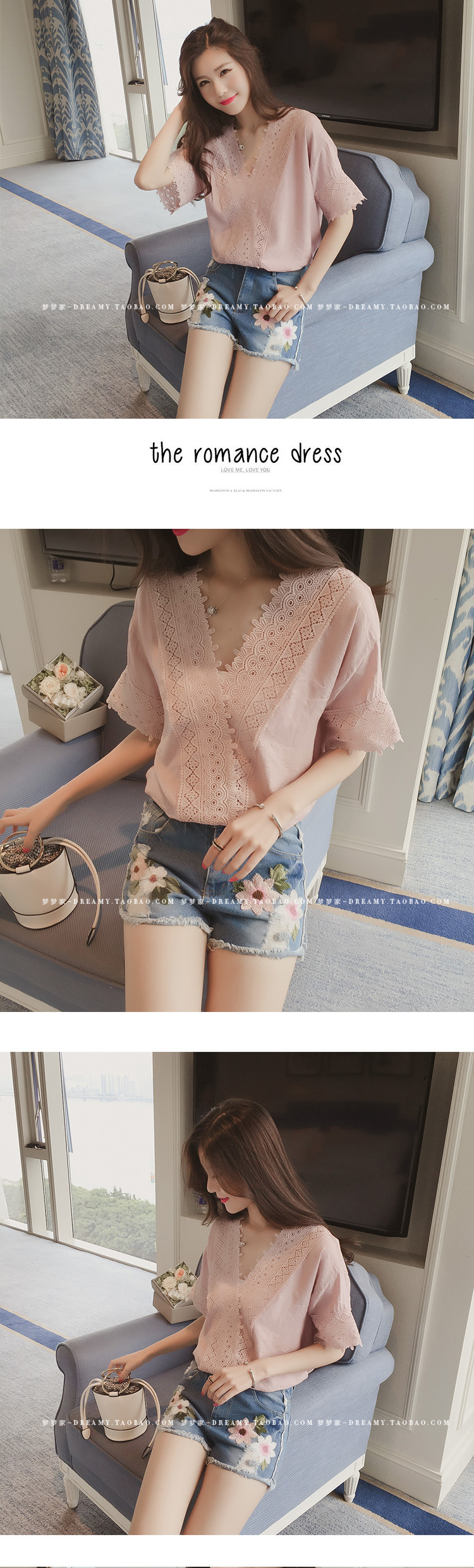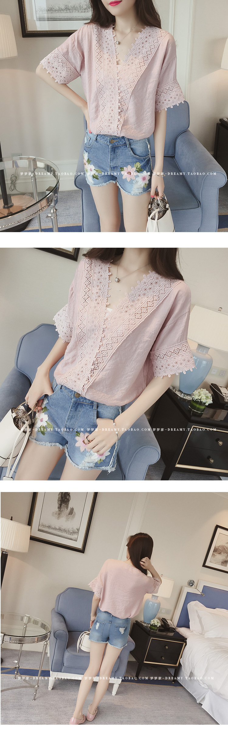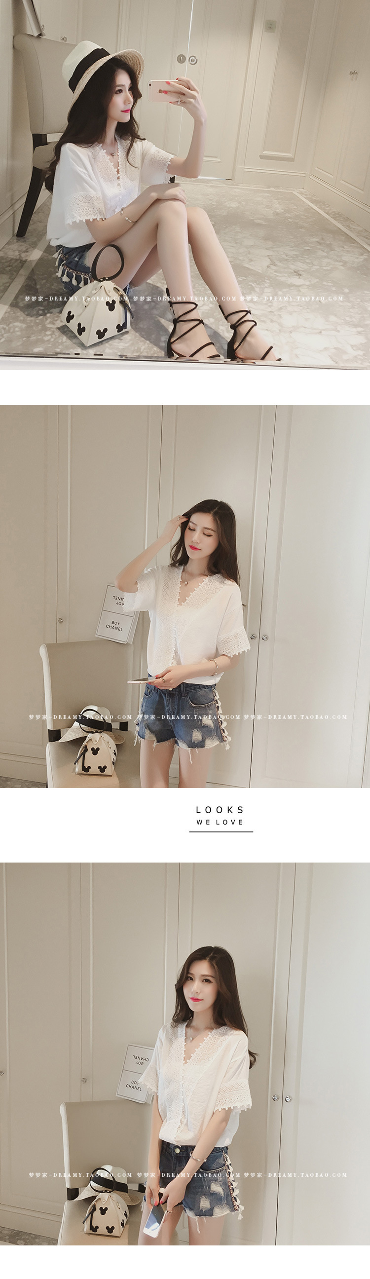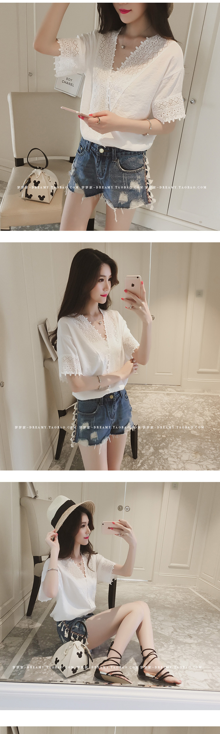 2025 여름 한국 스타일 새로운 느슨한 흰색 레이스 쉬폰 셔츠 여성 반팔 솔리드 컬러 중공 v 넥 쉬폰 탑스토어 가기